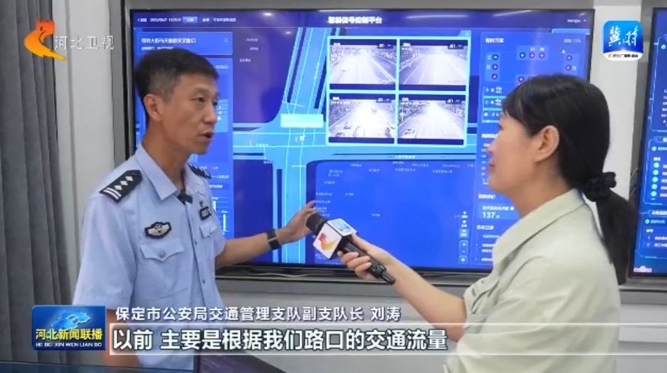在保定市交通拥堵数智化研判治理中心,不断变化的信号灯配时数据,来自智能信号控制系统的自动调节。