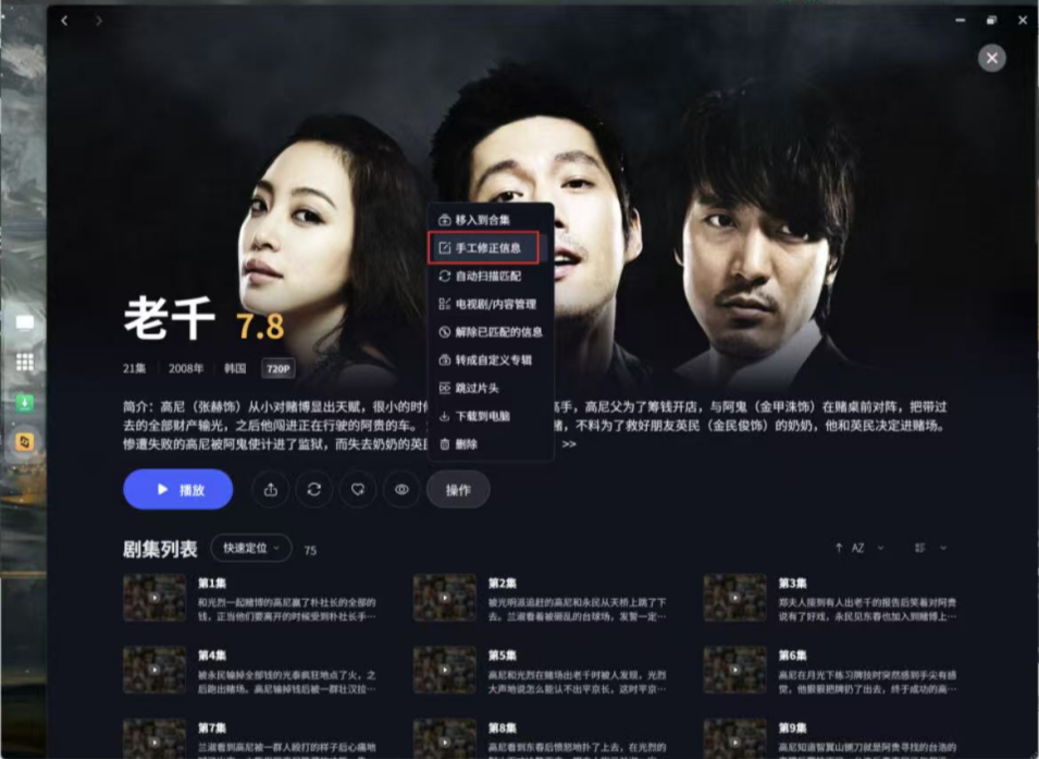 反观部分绿联私有云产品,其影视管理功能仍停留在基础分类层面。用户需手动修正重复剧名(如将韩影《老千》与短剧《老千》区分),且缺乏自动合并续集的能力。当资源量超过百部时,手动维护的成本显著增加,导致影视库逐渐沦为“电子垃圾场”。
