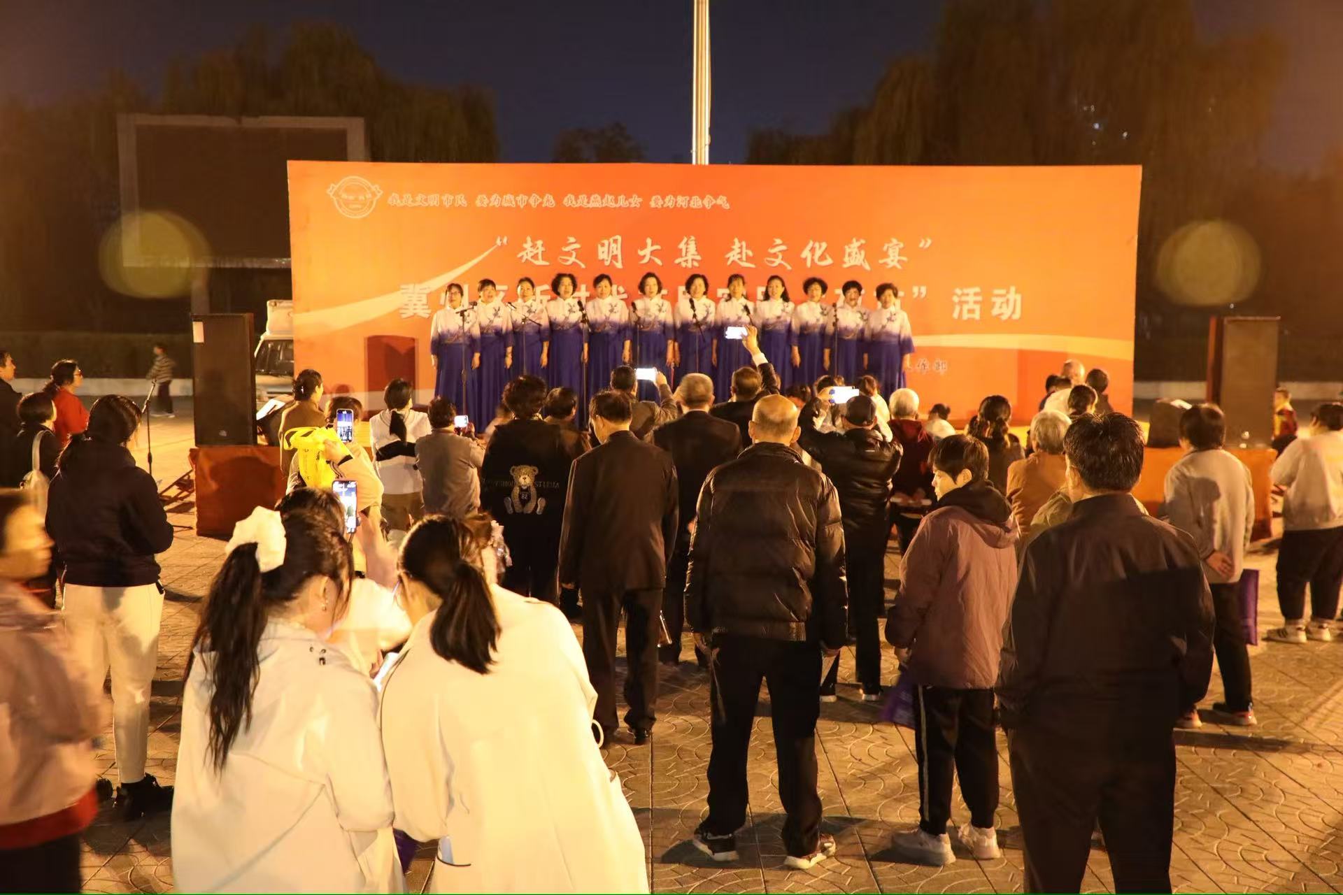 在便民服务宣传区,工作人员围绕居民日常关注的民生政策展开全面解读,真正让便民服务变得“触手可及”。而“婚恋帮帮团”的服务点位更吸引了众多居民驻足,该服务集移风易俗宣传、公益红娘牵线、专业婚恋心理辅导与婚恋法律咨询于一体,为居民提供了“一站式”婚恋服务支持。各宣传点位在贴心服务的同时,积极传递文明理念,让文明新风吹进社区。此外,各社区还精心编排了歌舞表演、乐器演奏、大合唱等文艺节目,充分展现了冀州群众积极向上的精神风貌和文明风采。现场歌声、掌声、欢笑声交织在一起,让居民在轻松愉悦的氛围中共享邻里温情,感受文明新风,构成了“文明夜市”最动人的乐章。“能看精彩节目,还能享受便民服务,我觉得这个文明夜市活动举办得很成功、很惠民。”春风社区居民张翠英连连点赞。