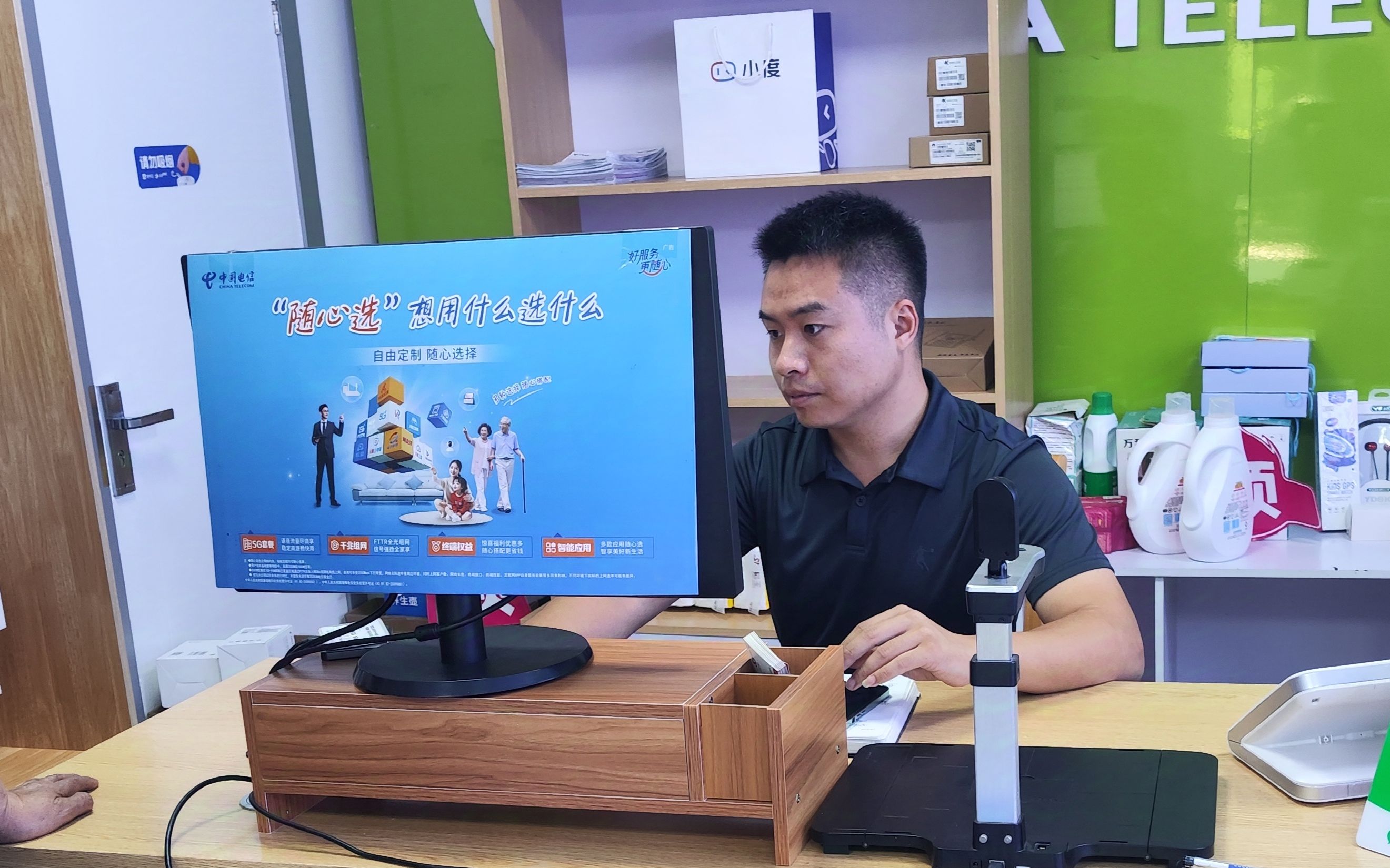 37岁的周春阳作为桃城区营销中心河东支局装维人员,在公司干事创业良好氛围的引领下,其参加的首批网格化装维营业厅在国庆期间顺利开业。开业期间,衡水公司领导及各业务部门的大力支持给了他极大信心和鼓舞。经过一段时间的运营,他的小店已初见成效,未来他将朝着形象标准化、服务类营业厅化的方向迈进,统一人员服装及店内布展,积极学习新媒体宣传,通过短视频和直播等方式扩大在周边社区的影响力,以更好的服务广大居民用户。他坚持"用心服务、用户至上"的理念,决心将小店打造成高标准mini营业厅,在"十一"营销的东风下继续精益求精。