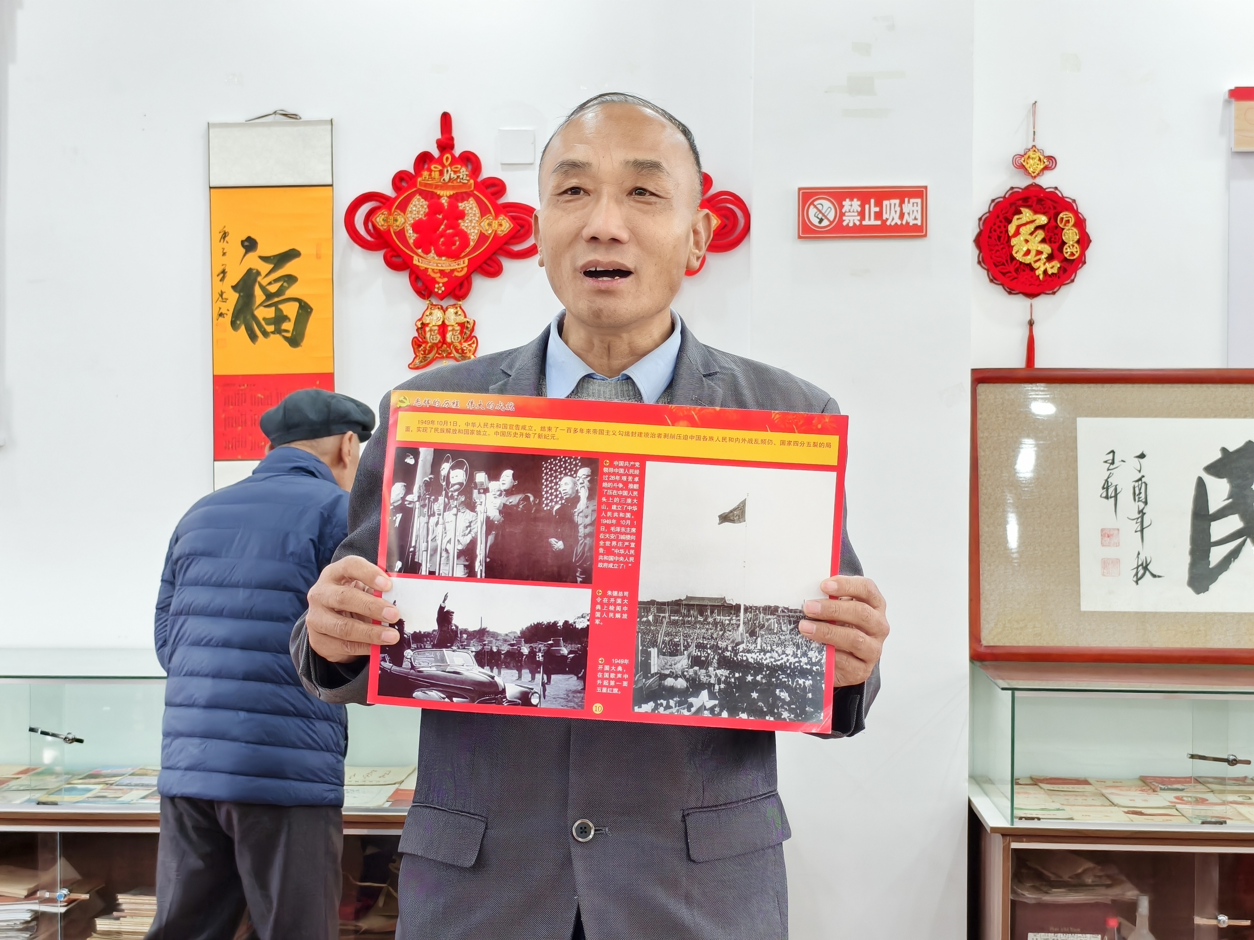 现场,抗美援朝老兵子女王淑敏手捧资料,饱含深情地讲述父辈的战斗经历。她的声音时而激昂,时而低沉,讲到感人之处,眼中泛起泪光。孩子们一个个挺直腰板,目不转睛,沉浸在历史的回响中。红色收藏爱好者石立泉化身为讲解员,耐心细致地为观众介绍每件展品背后的故事,从战争的缘起,到志愿军战士的英勇壮举,娓娓道来,邱少云、黄继光等英雄的事迹再一次震撼人心。