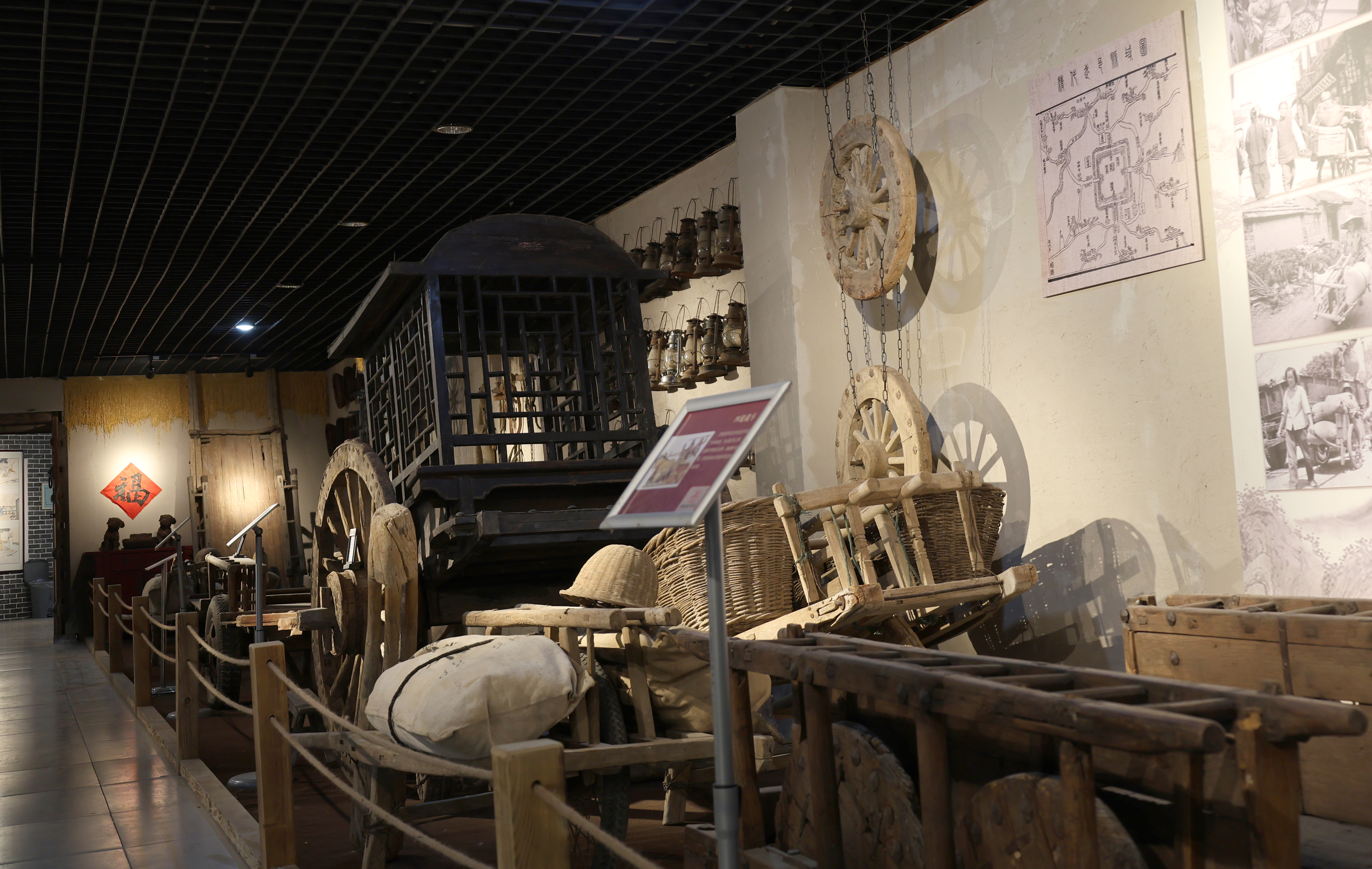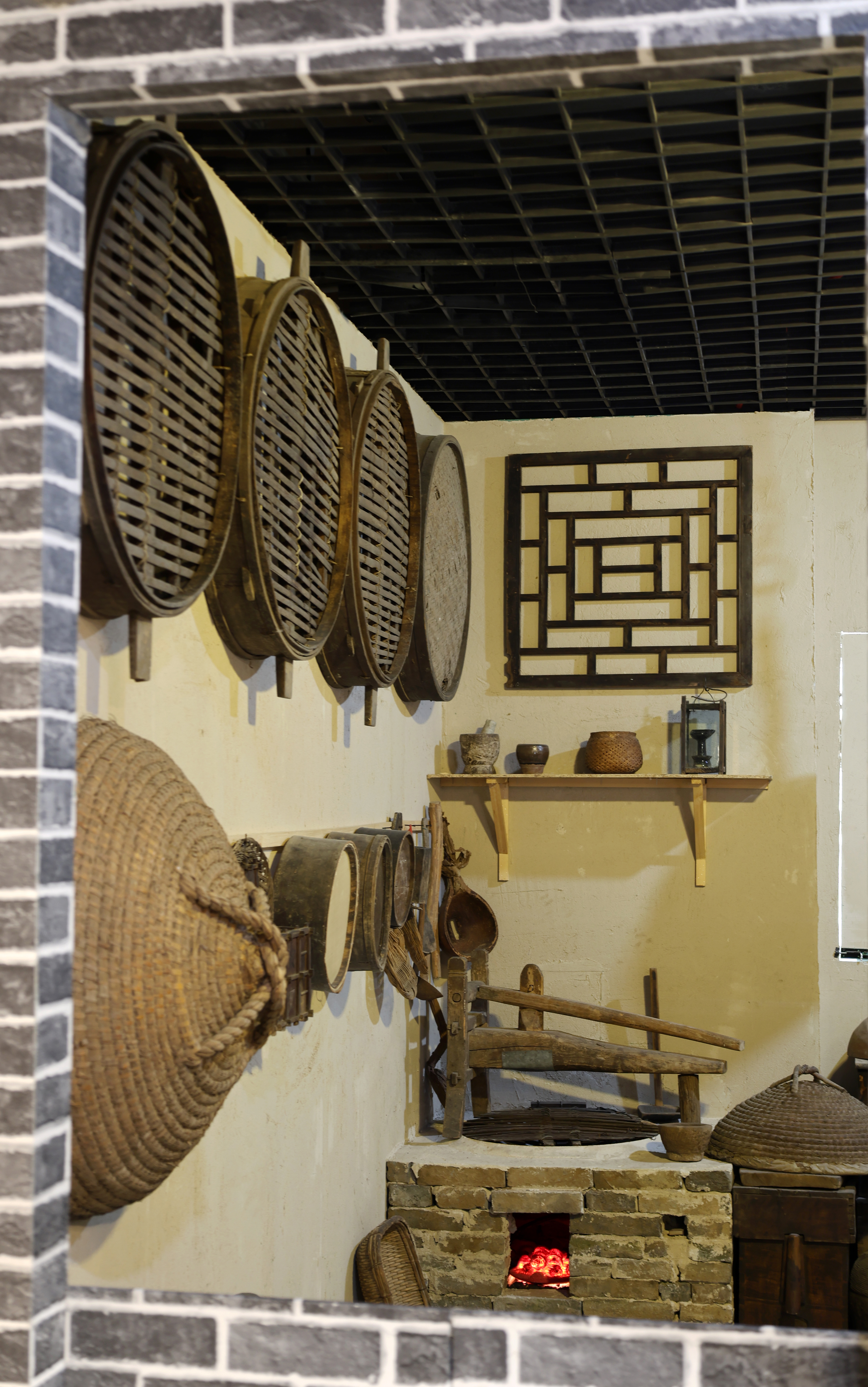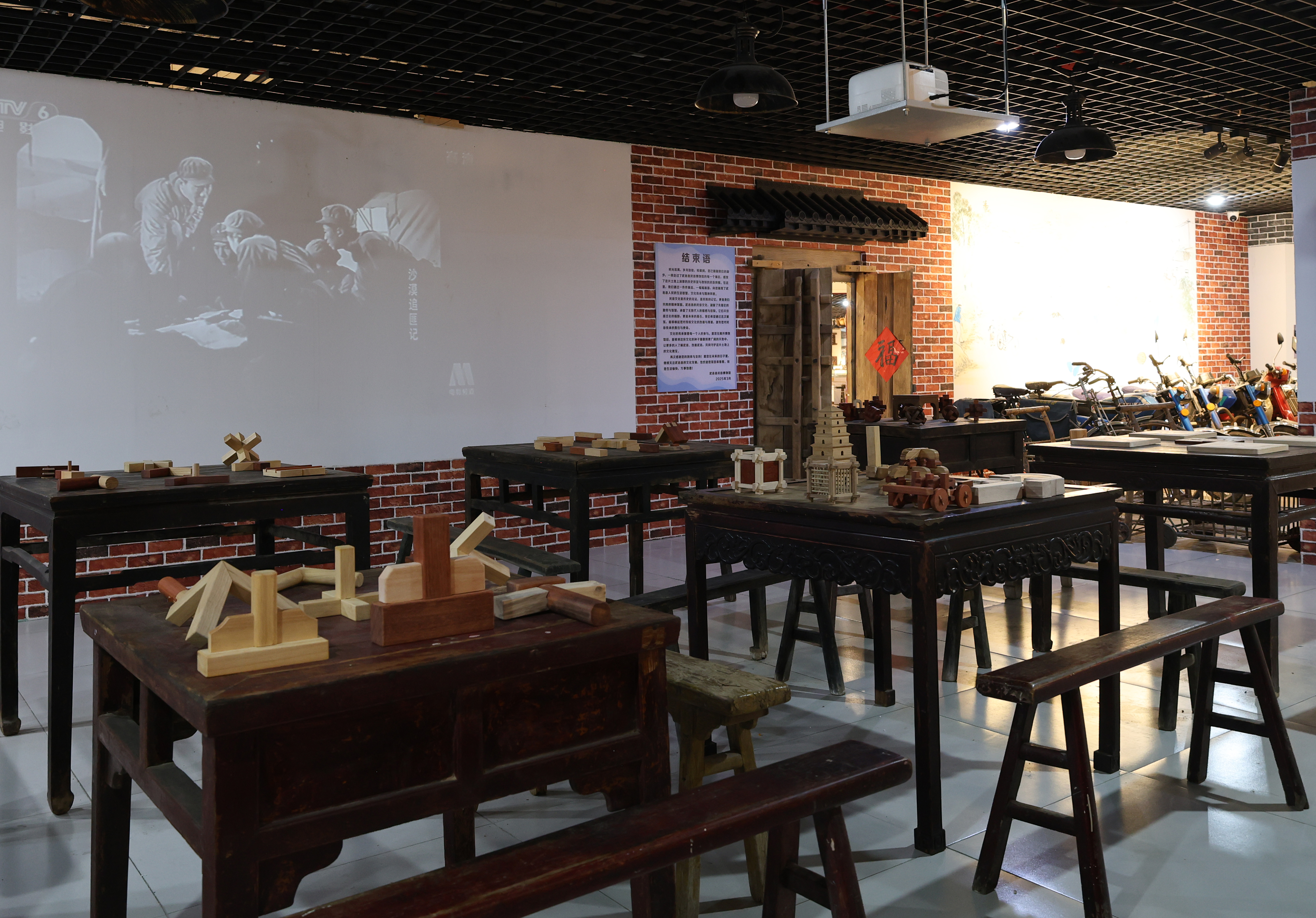 转过墙面,打开博物馆大门走进馆内,农耕器具展示区率先铺开“耕耘图景”:犁、耙、镐头、扬锨整齐排列,木耙的纹路里似还残留着旧时田埂的泥土,几名上了岁数的参观者蹲下身,指着犁上的榫卯结构轻声交流:“当年我家也有这么一张犁,春耕时得两个人拉着走。”在民俗家具展示区,翘头案、八仙桌、太师椅按传统规制摆放,讲解员的声音适时响起:“有些家庭的堂屋兼做佛堂,案上会设佛龛或供奉亲人牌位,这是老辈人的生活规矩。”一旁的家居生活区更用桌、椅、箱、柜与土炕,还原出旧时农家起居场景,参观者们纷纷指着土炕,笑着回忆“小时候就这么围着炕桌吃饭。”