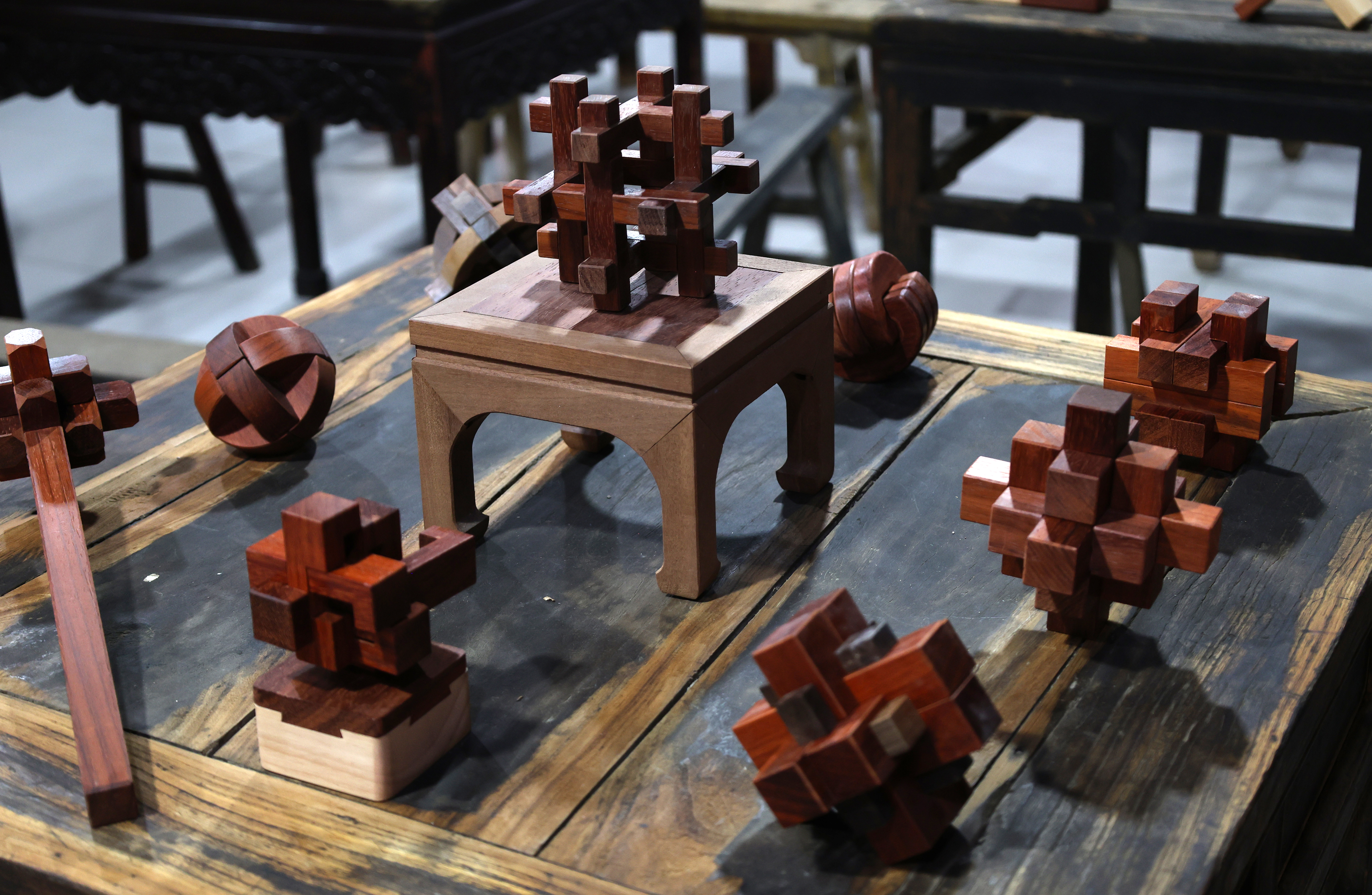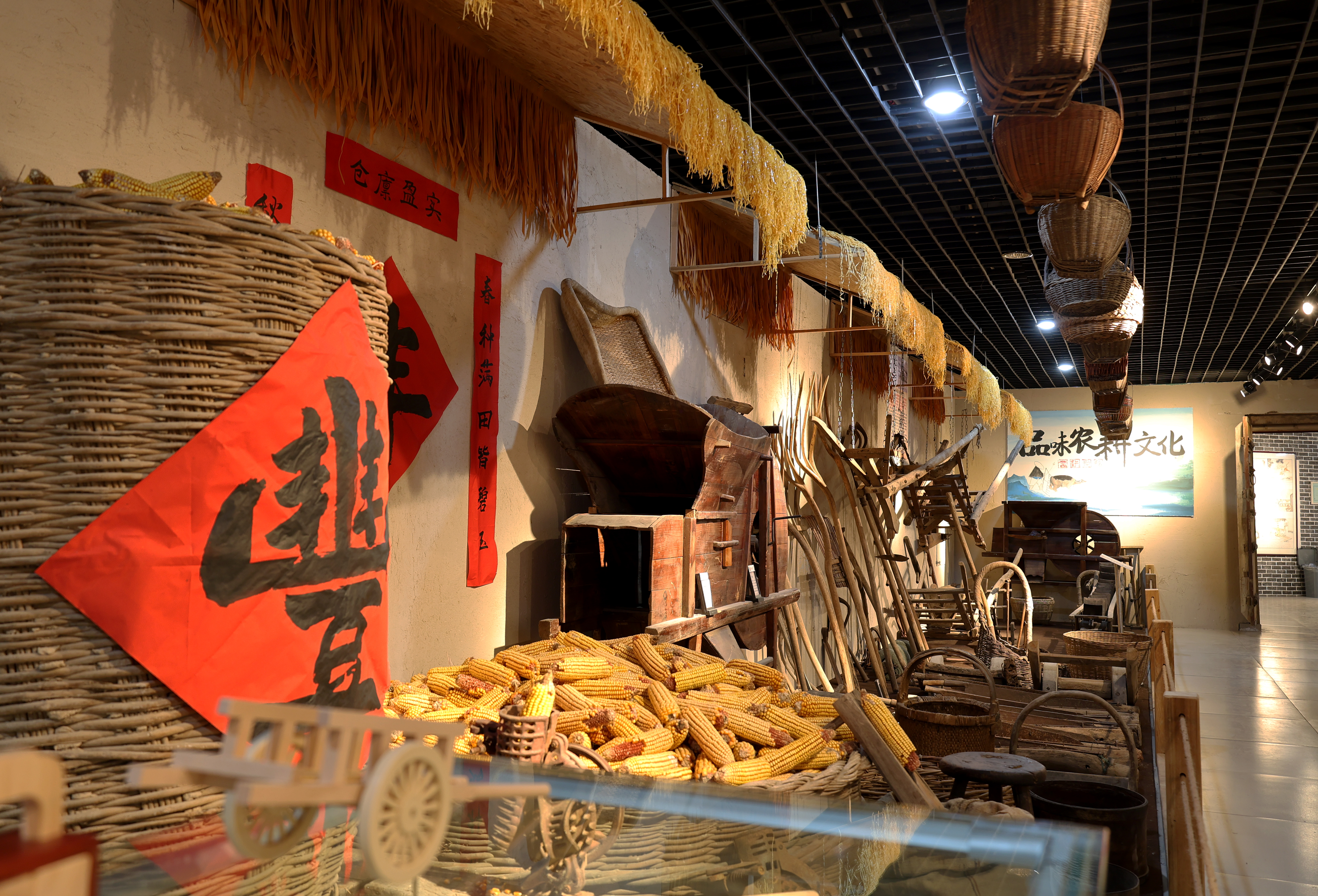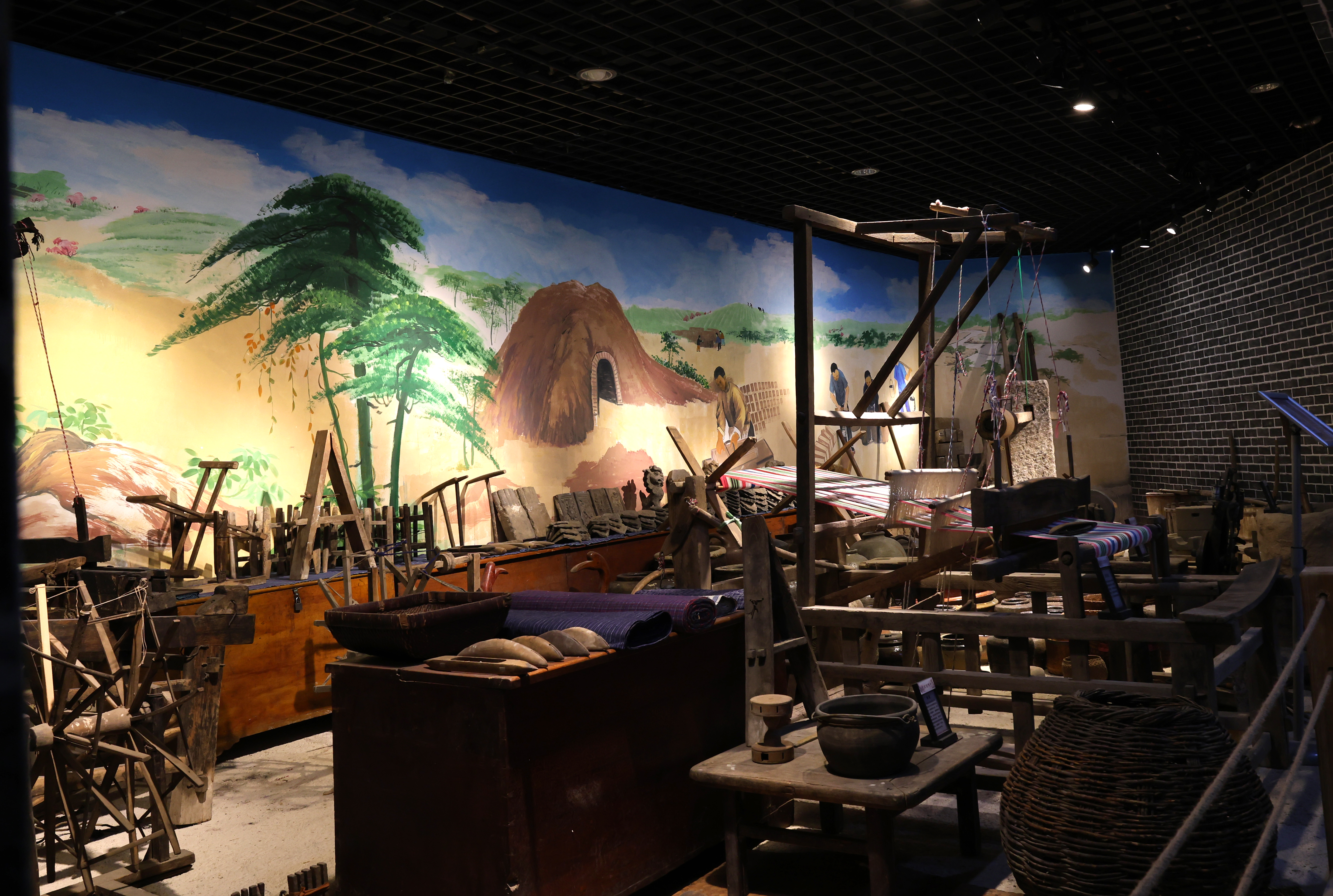 转过墙面,打开博物馆大门走进馆内,农耕器具展示区率先铺开“耕耘图景”:犁、耙、镐头、扬锨整齐排列,木耙的纹路里似还残留着旧时田埂的泥土,几名上了岁数的参观者蹲下身,指着犁上的榫卯结构轻声交流:“当年我家也有这么一张犁,春耕时得两个人拉着走。”在民俗家具展示区,翘头案、八仙桌、太师椅按传统规制摆放,讲解员的声音适时响起:“有些家庭的堂屋兼做佛堂,案上会设佛龛或供奉亲人牌位,这是老辈人的生活规矩。”一旁的家居生活区更用桌、椅、箱、柜与土炕,还原出旧时农家起居场景,参观者们纷纷指着土炕,笑着回忆“小时候就这么围着炕桌吃饭。”
