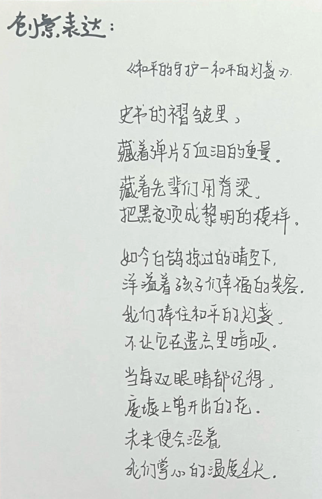 1+3项目班周同学郑重写下对“守护”的理解: