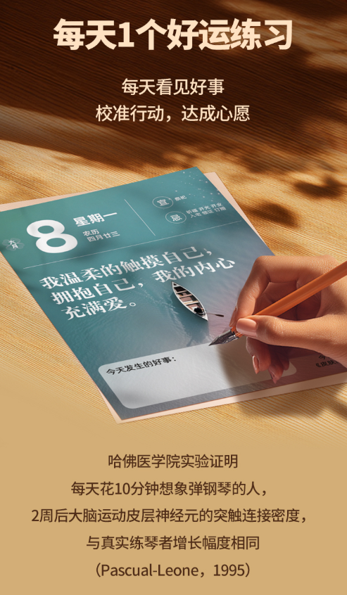 有书产品负责人表示:“我们理解的‘好运’,是当一个人通过科学的行动持续自我提升后,所自然呈现的积极人生状态。这款日历的核心,就是为用户提供一套‘好运方法论’,让改变有据可依,让成长水到渠成。”