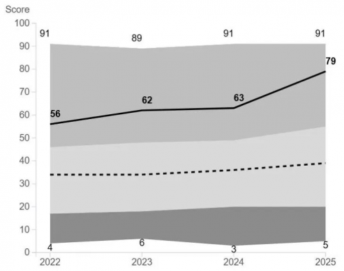 标普CSA作为全球极具影响力的企业可持续发展评估,其结果对投资者和资本市场具有重要参考价值。此次评估中,新奥能源在气候管治策略、人力资源管理、职业健康安全、公司管治、产品管理等领域的多项细分指标中获得提升。公司评分不仅较去年实现大幅提升,更远高于全球同业平均分,彰显了新奥能源在可持续发展管理实践方面的卓越成就。