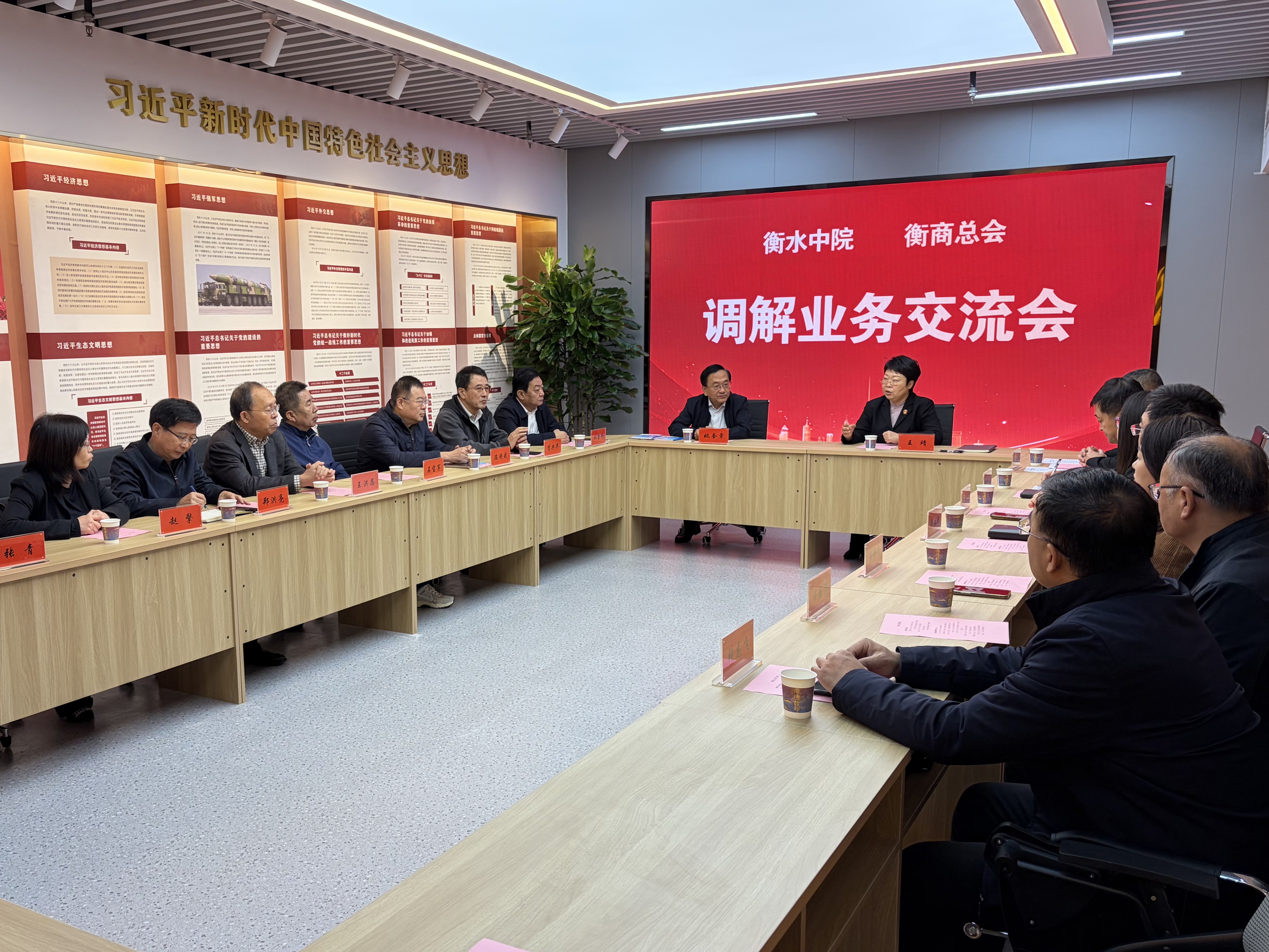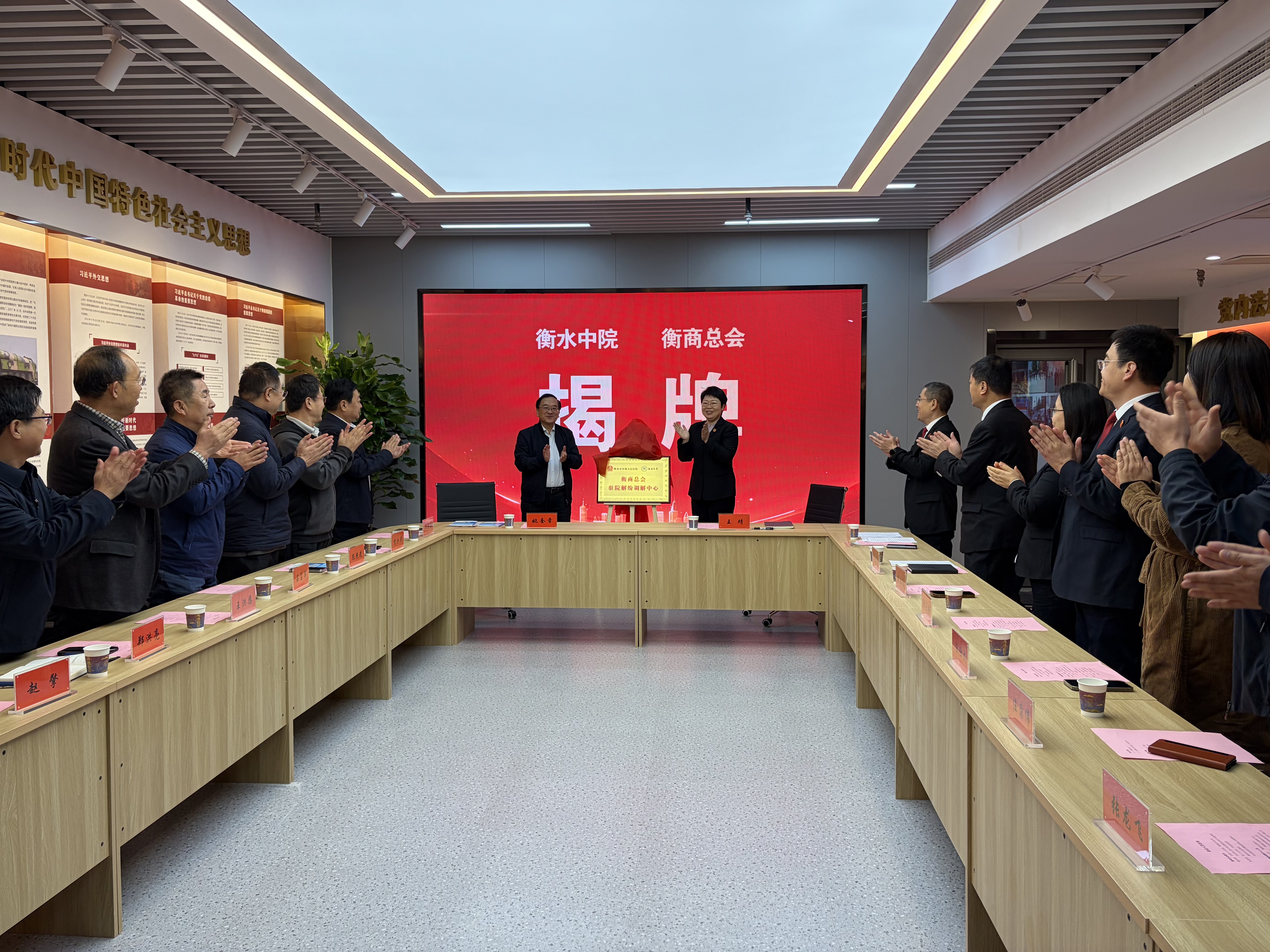 10月21日上午,衡商总会驻院解纷调解中心在衡水市中级人民法院党建实训基地揭牌。该中心由衡水中院与衡商总会联合打造,是双方深化涉企纠纷多元化解合作的重要实践,为我市企业维权搭建起“高效、专业、便捷”新平台。
