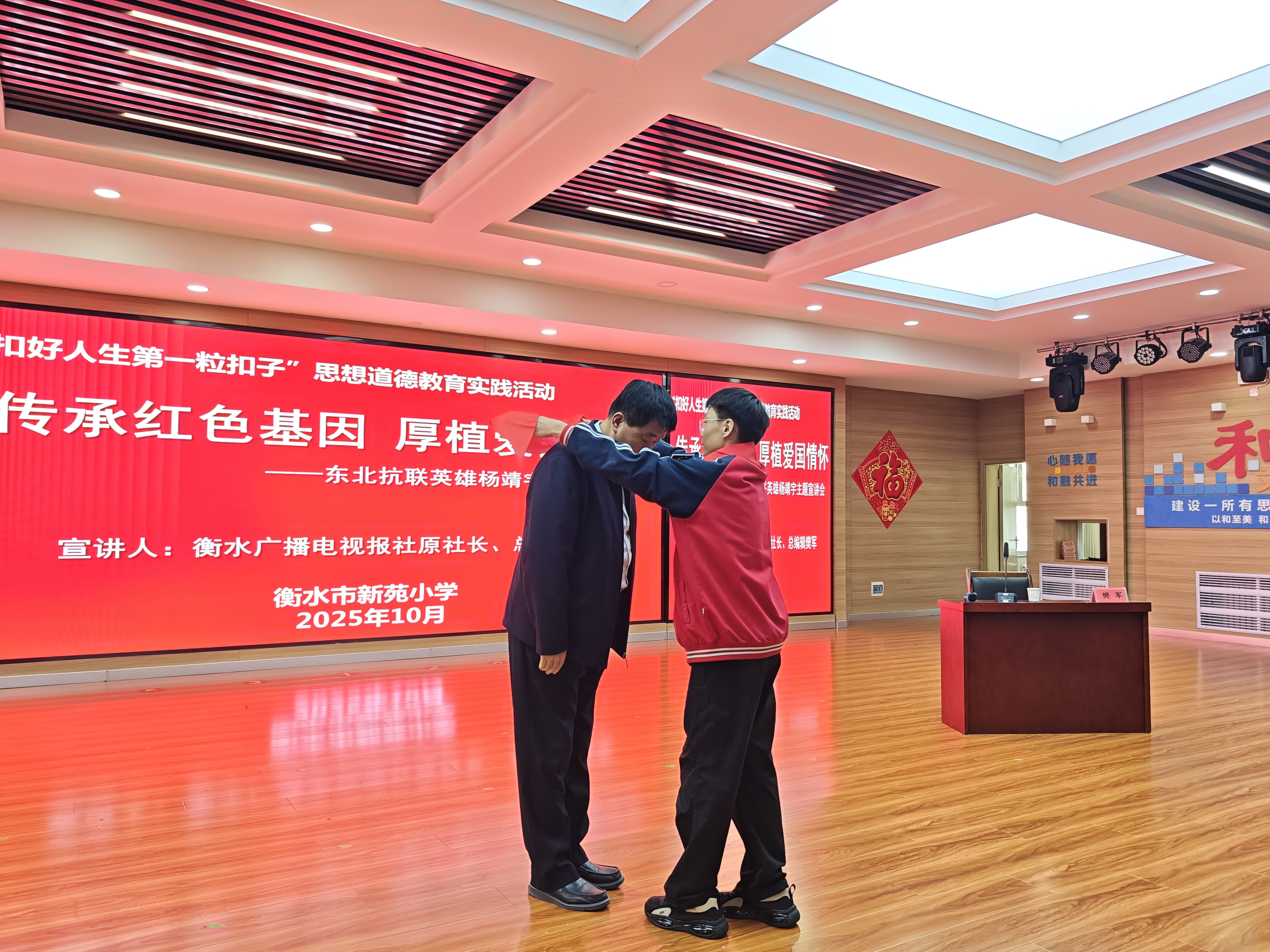 10月21日,衡水市新苑小学开展东北抗联英雄杨靖宇主题宣讲会。