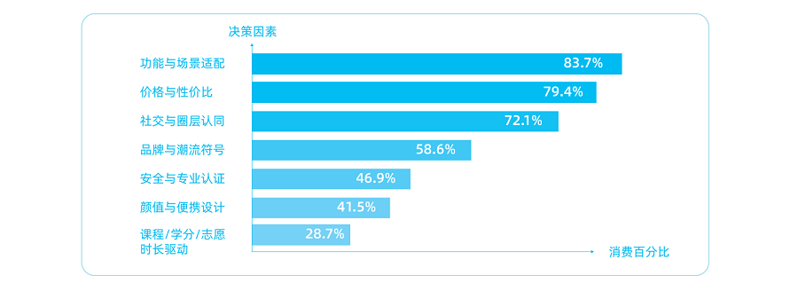 品质消费:一线城市学生愿为耐用性支付溢价,“价格 + 质量” 双重考量的性价比逻辑仍是主流;