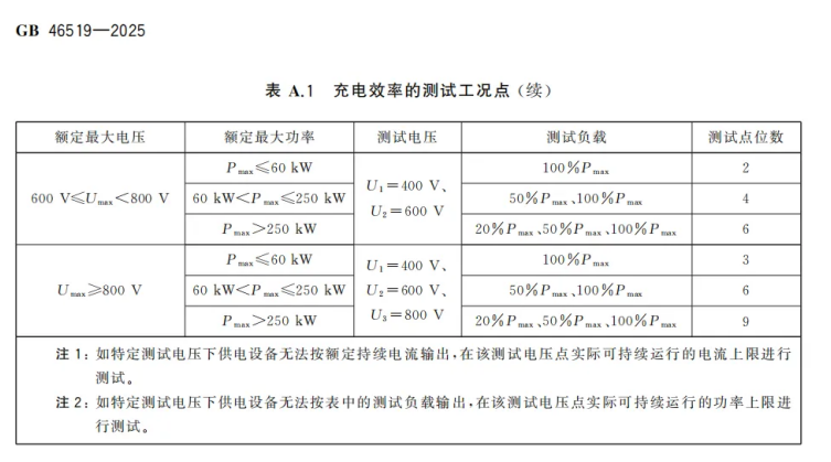 新国标将直流充电设备能效划分为三个等级,一级能效作为最高标准,要求充电桩在多个电压点(如400V、600V、800V)和多个负载点(20%、50%、100%)等共9个工况下进行加权测试,而非仅依赖单一工况下的峰值效率。