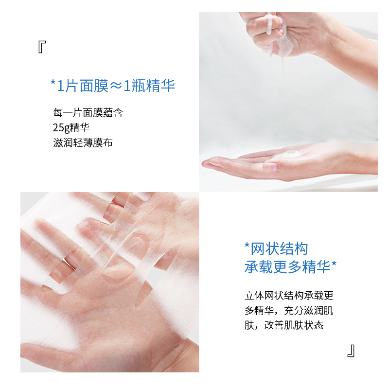 考虑到秋冬作息调整需求,该面膜采用免洗型设计,清洁面部后涂抹即可入睡,无需清洗,夜间黄金修复期持续滋养肌肤。膜布选用超纤薄奶皮质地,紧密贴合面部轮廓,确保精华液均匀渗透,15分钟即可完成「急救修护」,尤其适合熬夜后、出差时的密集护理。