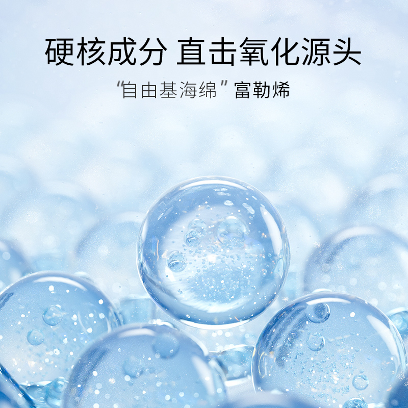 秋冬紫外线依旧强劲,自由基加速胶原蛋白流失是肌肤老化的「隐形杀手」。面膜中添加的富勒烯作为诺贝尔化学奖成果转化成分,抗氧化能力是维生素C的172倍,经实验验证可在11小时内持续清除自由基,阻断氧化应激对肌肤的损伤。其独特的笼状分子结构能深入肌底,像「海绵」般吸附并中和自由基,延缓干纹、细纹生成,让肌肤在秋日也能保持紧致弹润。