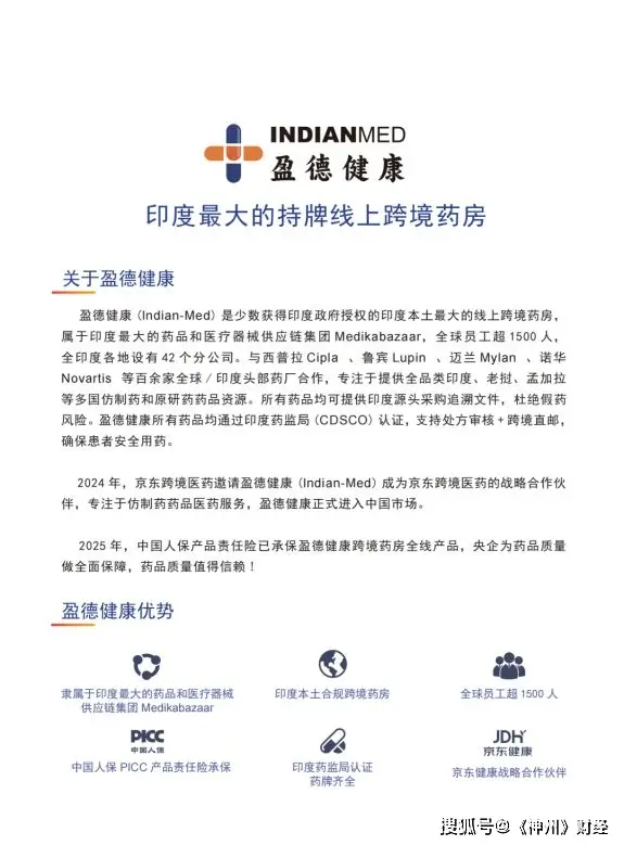 盈德健康作为京东健康跨境医药数十家战略合作企业中唯一的印度本土战略合作伙伴,凭借成熟的跨境供应链体系,持续助力京东完善国际医疗产品供给布局。