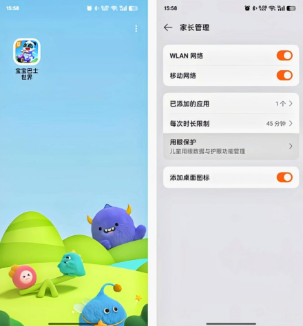 广东欢太科技有限公司从源头发力,推出“儿童模式”功能,成为家长管控的“得力助手”。该模式支持家长自定义未成年人可访问的应用范围,屏蔽不适宜内容;同时可设置每日使用时长,时间用尽后系统自动关闭应用,从源头上减少过度游戏可能。更贴心的是,模式能通过手机传感器监测光线强度、孩子坐姿与用眼距离,一旦发现环境过暗、距离过近等问题,立即发出提醒,守护视力健康。