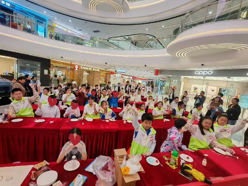 10月4日,组织市同心青少年志愿服务中心“湖小荷”志愿者在万达广场开展“小橘灯”残健融合手工DIY眼镜活动。普通孩子与特殊儿童两两结对,互帮互助。“湖小荷”志愿者们耐心地为特殊儿童讲解制作要点,特殊儿童积极尝试、认真操作,活动增进了普通孩子与特殊儿童之间的理解与友谊。