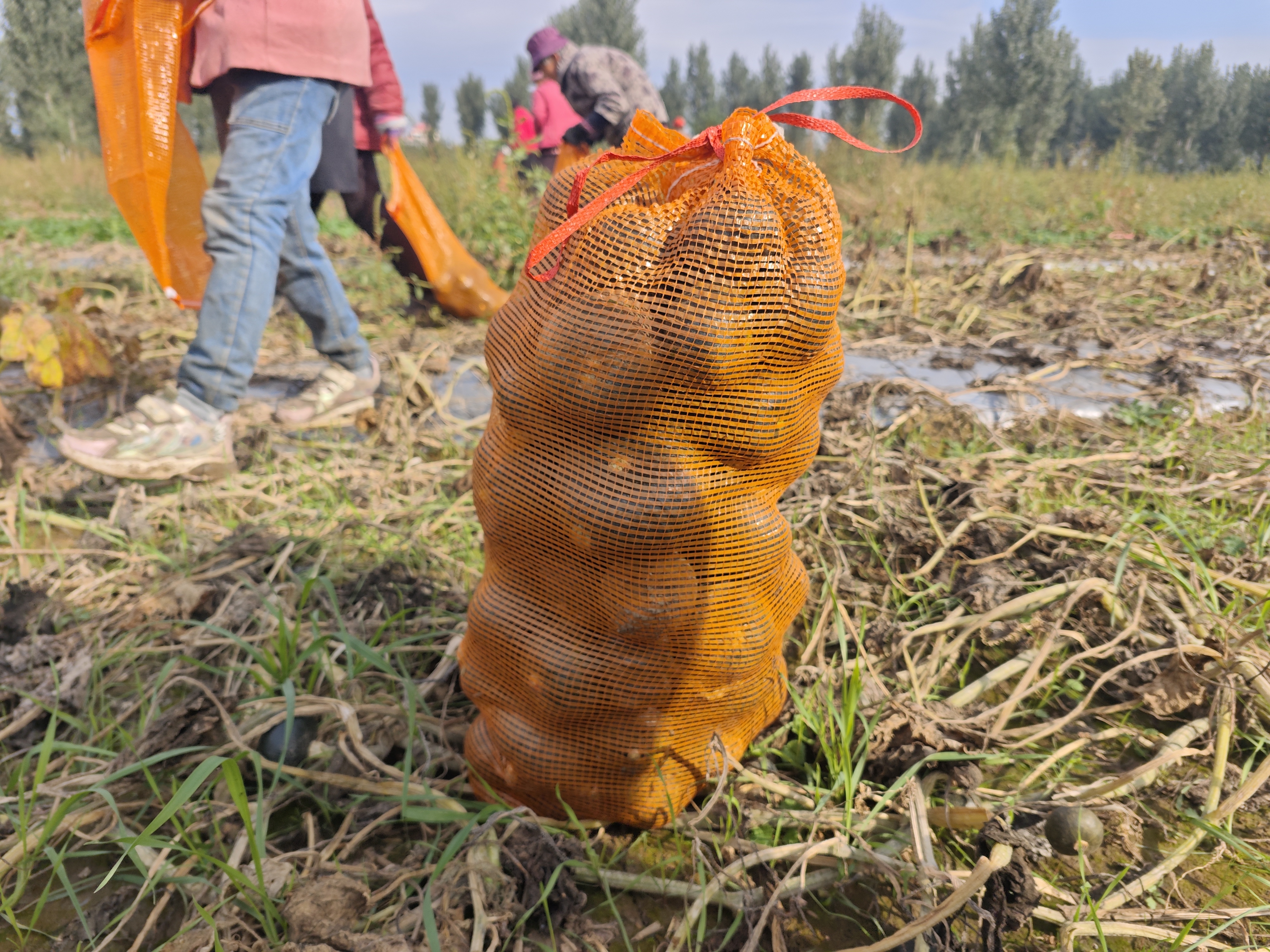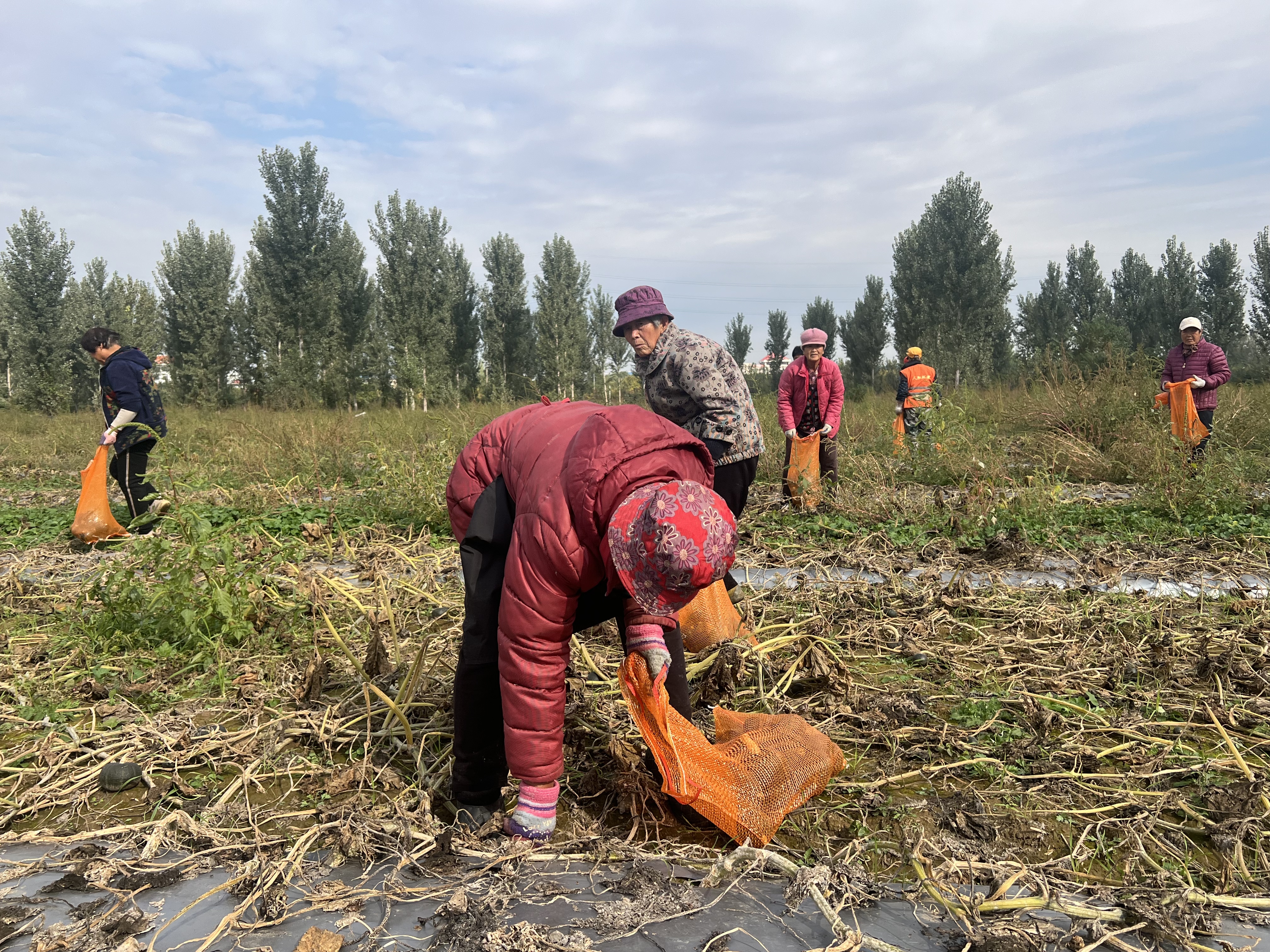 这片南瓜地,是从村民手中流转而来。农户不仅能拿到稳定的土地流转收益,还能通过务工、分红实现多重增收。57岁的王军亭正麻利地把个头均匀、表皮光滑的南瓜装进编织袋,笑着说:“现在来种植基地干活,既能挣钱又能照顾家里,比出去打工踏实多了。”