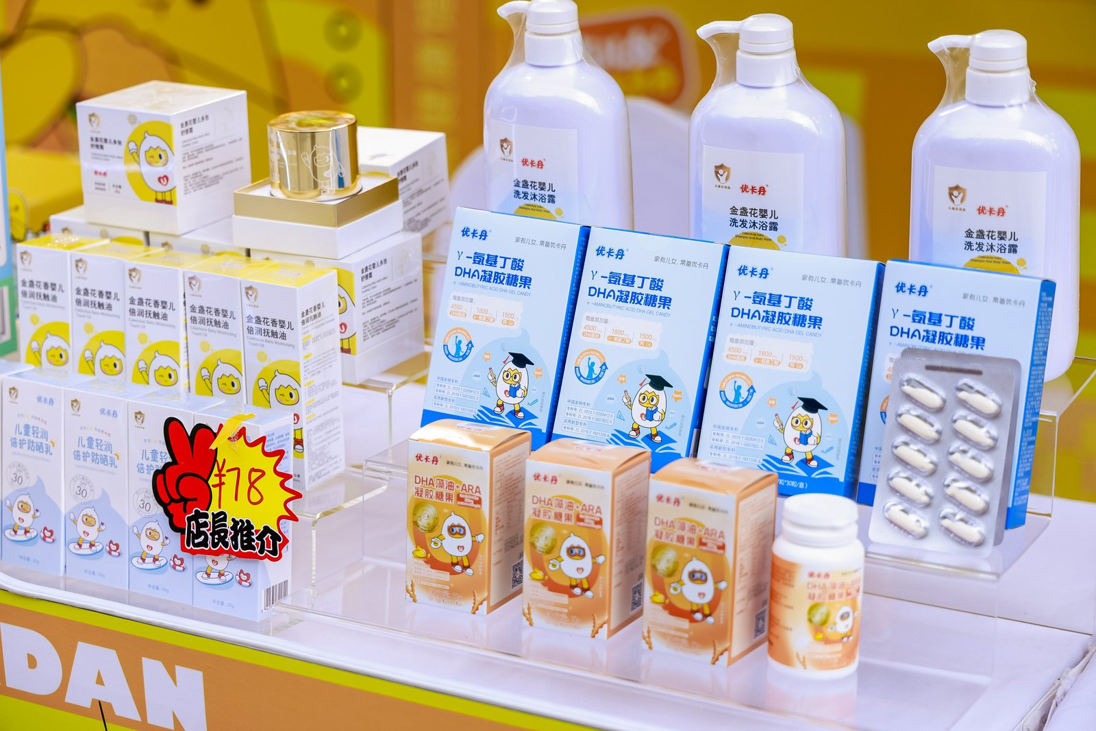 此次亮相的核心亮点,是优卡丹围绕 “医药育养” 构建的大健康产品矩阵。不同于传统药品,这些产品聚焦儿童 “研” 与 “养” 的深度需求:明星产品DHA 藻油 + ARA 凝胶糖果,以 “3A+PS” 科学配比精准匹配儿童关键期脑发育与营养补充需求,填补市场上儿童精准营养产品的细分空白;系列大健康产品则覆盖儿童日常营养、护理等场景,与药品端的小儿氨酚烷胺颗粒形成互补,共同构建 “医养结合” 的儿童健康守护体系。