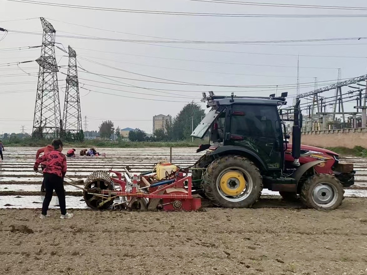 10月24日,桃城区赵家圈镇戴家口村的大蒜正处于播种关键期。在200亩的蒜田里,村民们正俯身将蒜种精准插入膜孔,十排一列,纵横整齐;新型大蒜种植机沿着田垄匀速前进,覆膜、打药、插眼一体化作业一气呵成,为来年的丰收和乡村振兴播下希望。