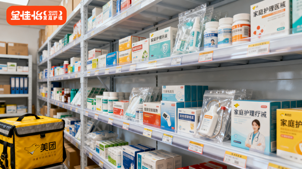 作为医疗器械即时零售领域的创新先行者,全佳怡始终以用户需求为核心,构建了“线上 + 线下”深度融合的零售体系。在线下,品牌通过在社区周边布局前置仓与加盟店,将医疗器械“仓库”搬到消费者身边;在线上,依托美团、饿了么、京东到家等主流即时配送平台,消费者只需打开手机 APP,即可轻松选购 3000 余种医疗器械产品,涵盖检测类(血糖仪、血压计)、康复类(轮椅、助行器)、防护类(口罩、医用手套)、家庭护理类(制氧机、护理床)等全品类,满足从应急需求到日常健康管理的多样化需求。