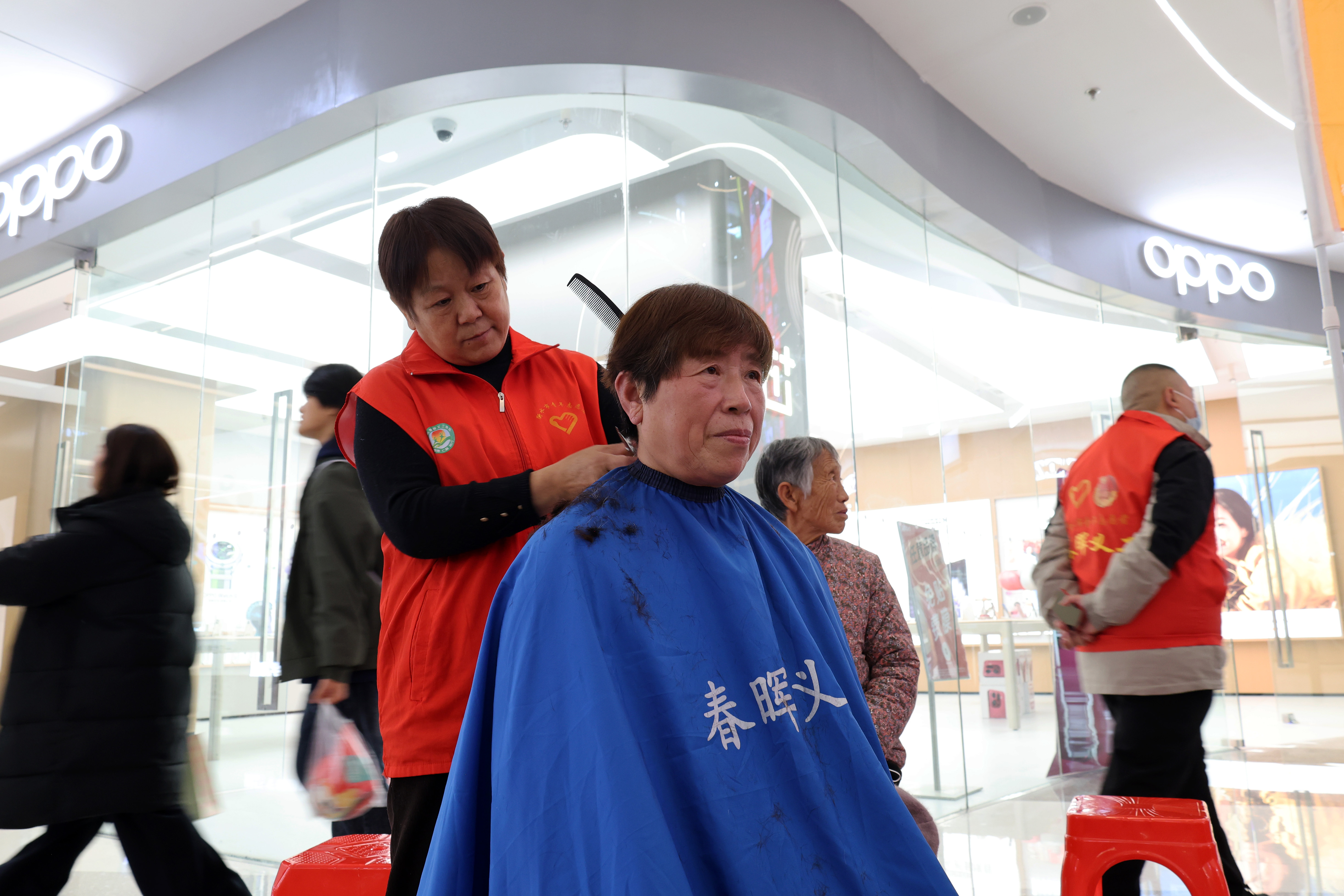 义诊台前,医生耐心测血压、答疑问;“爱心义剪”位上,志愿者娴熟修剪,让老人焕新颜;黄手环登记发放处排起长队,工作人员核对信息后,将印有家属联系方式的黄手环递到老人手中,系牢“安全保险”;金融防诈骗、免费视力检测摊位前,志愿者结合案例讲防范技巧,守护老人“钱袋子”。
