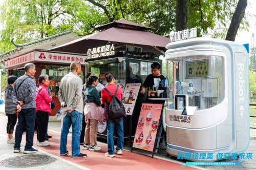 逛累了?在“便民服务驿站”,多才多艺的机器人店员已就位。萌萌的爆米花机器人“噗”的一声,献上一份香甜;酷酷的咖啡机器人则在60秒内,完成从取杯到拉花的精彩演绎。登上全无人驾驶小巴,任它载着您在林荫道上悠然穿行。