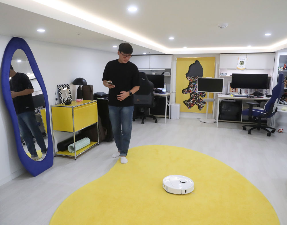 2025年10月13日,韩国消费者在首尔的家中使用扫地机器人。新华社记者姚琪琳摄