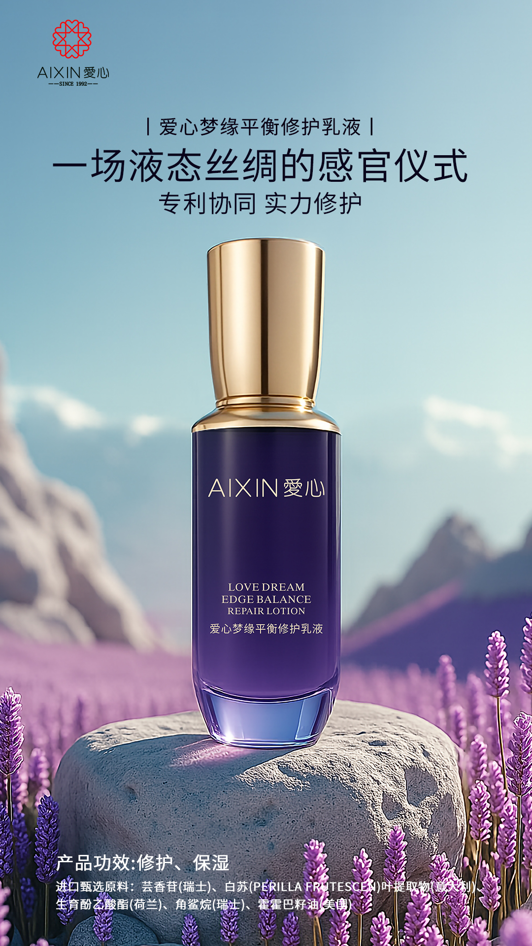 爱心梦缘平衡修护乳液,以「屏障修护×水油平衡」为核心,将冠军的韧性精神融入配方逻辑,直击高负荷肌肤的修护需求: