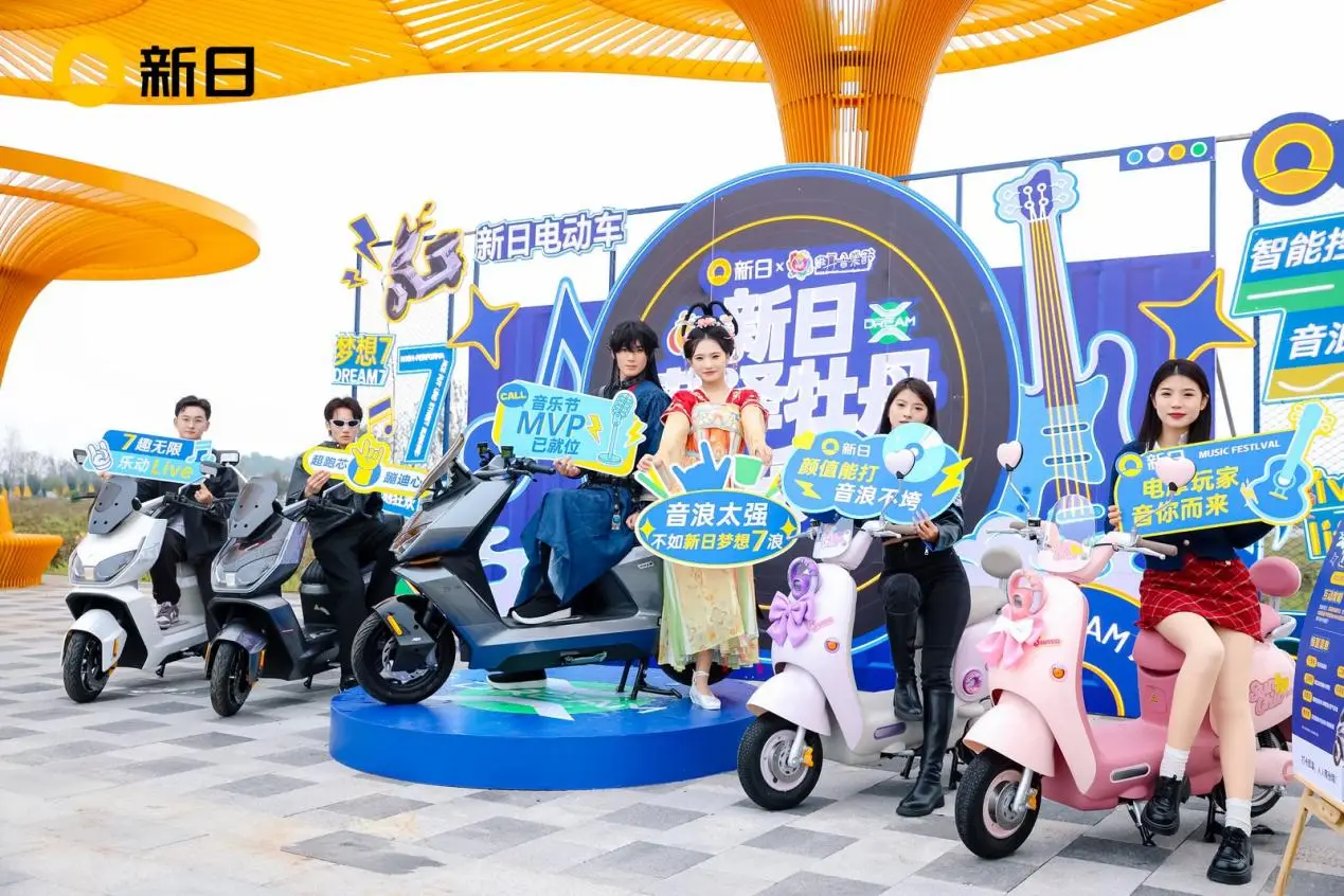 在音乐节这类潮流聚集地,单纯的陈列产品很难和Z世代玩到一起。而新日成功化身音乐节搭子,“梦想7”的科技感、“梦想6”的潮流范、“甜心”的可爱风,多款爆品车型设计精准覆盖不同审美偏好的年轻群体,成为音乐节亮眼时尚单品,活动现场吸引了不少汉服达人、潮流党与机车爱好者合影打卡,妥妥刷屏存在感。