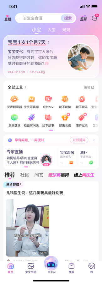 宝宝树作为深耕母婴行业多年的服务平台,持续推进AI技术落地。自2024年发布AI战略升级后,平台陆续接入多个AI系统,并于今年推出智能助手"米卡AI"。此次首页改版是AI战略实施的重要步骤,实现了从内容分发到服务体验的全方位优化。