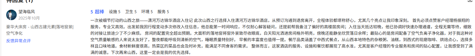此次国庆系列活动的成功举办,不仅在于其内容的丰富多彩与形式的别出心裁,更在于其背后所体现的山西潇河新城万达锦华酒店一贯坚持的高标准服务品质。酒店团队以高度的专业素养和饱满的服务热情,确保了每一位宾客需求的及时响应与贴心服务。同时,也让酒店收获了一众宾客的赞誉。
