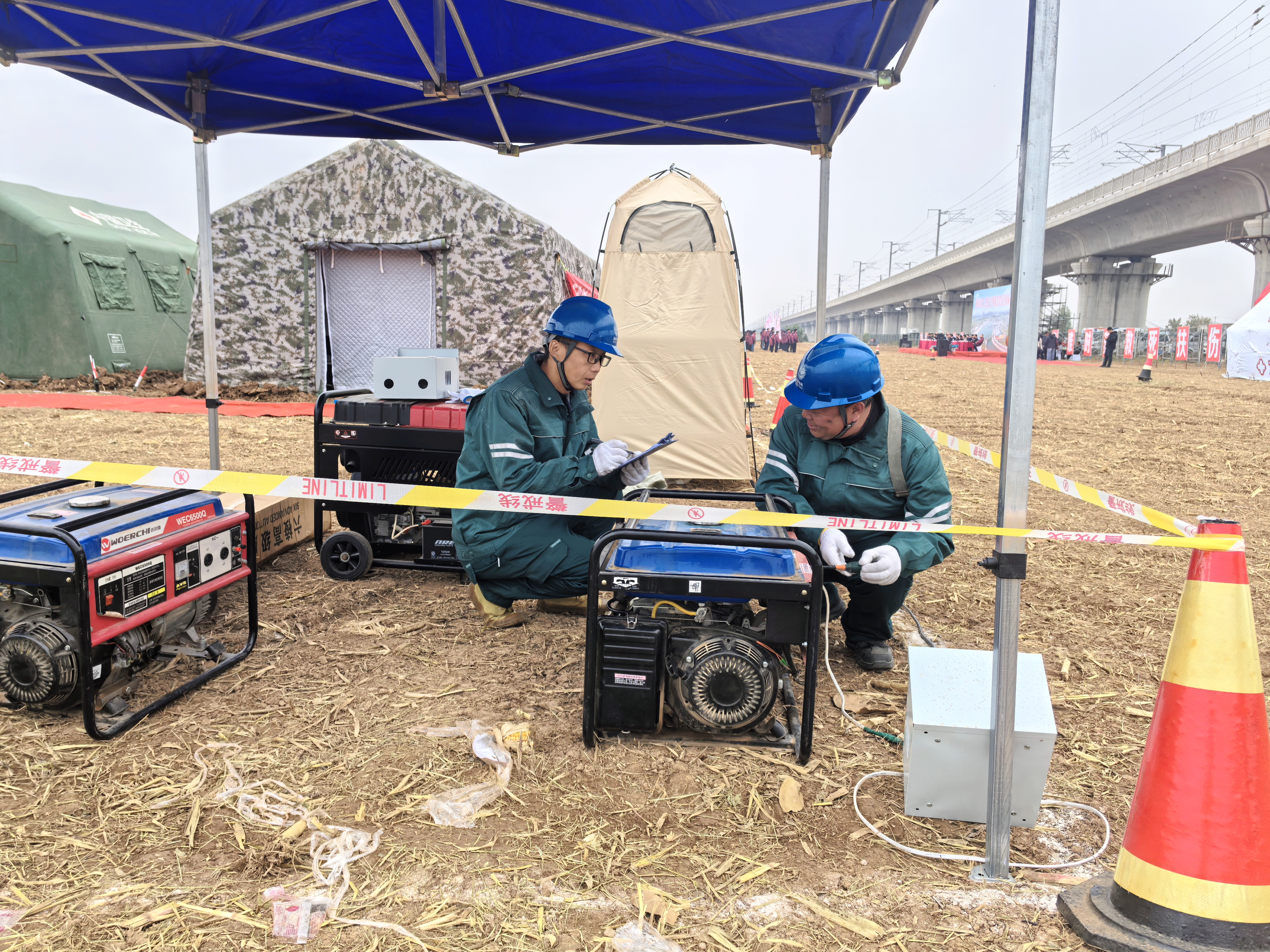 演练筹备阶段,该公司积极响应工作开展,专业部门和属地供电所协同配合,制定专项保电方案。针对演练现场启动仪式、食宿帐篷等多个临时用电点,提前组织外勤专业技术人员入场,对涉及供电的高低压线路和用电设备开展全面检查与维护,及时消除安全隐患,确保配电设施稳定运行。