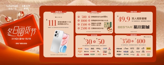 这个冬天,让我们相约米东吾悦广场,在精彩活动中感受家国情怀,在实惠购物中体验消费乐趣,共同书写属于乌鲁木齐的“双十一”幸福记忆!