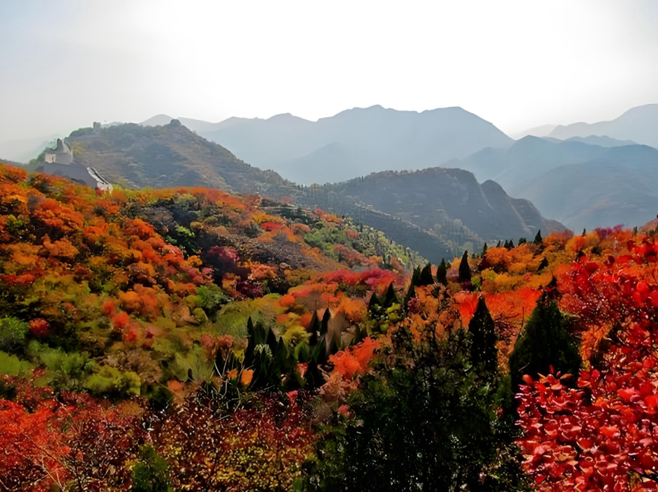 ◆仙台山是华北地区最大的红叶观赏区之一,秋日漫山黄栌、枫树染成“红海”,层林尽染间点缀着古刹牌坊,禅意与秋色交融。