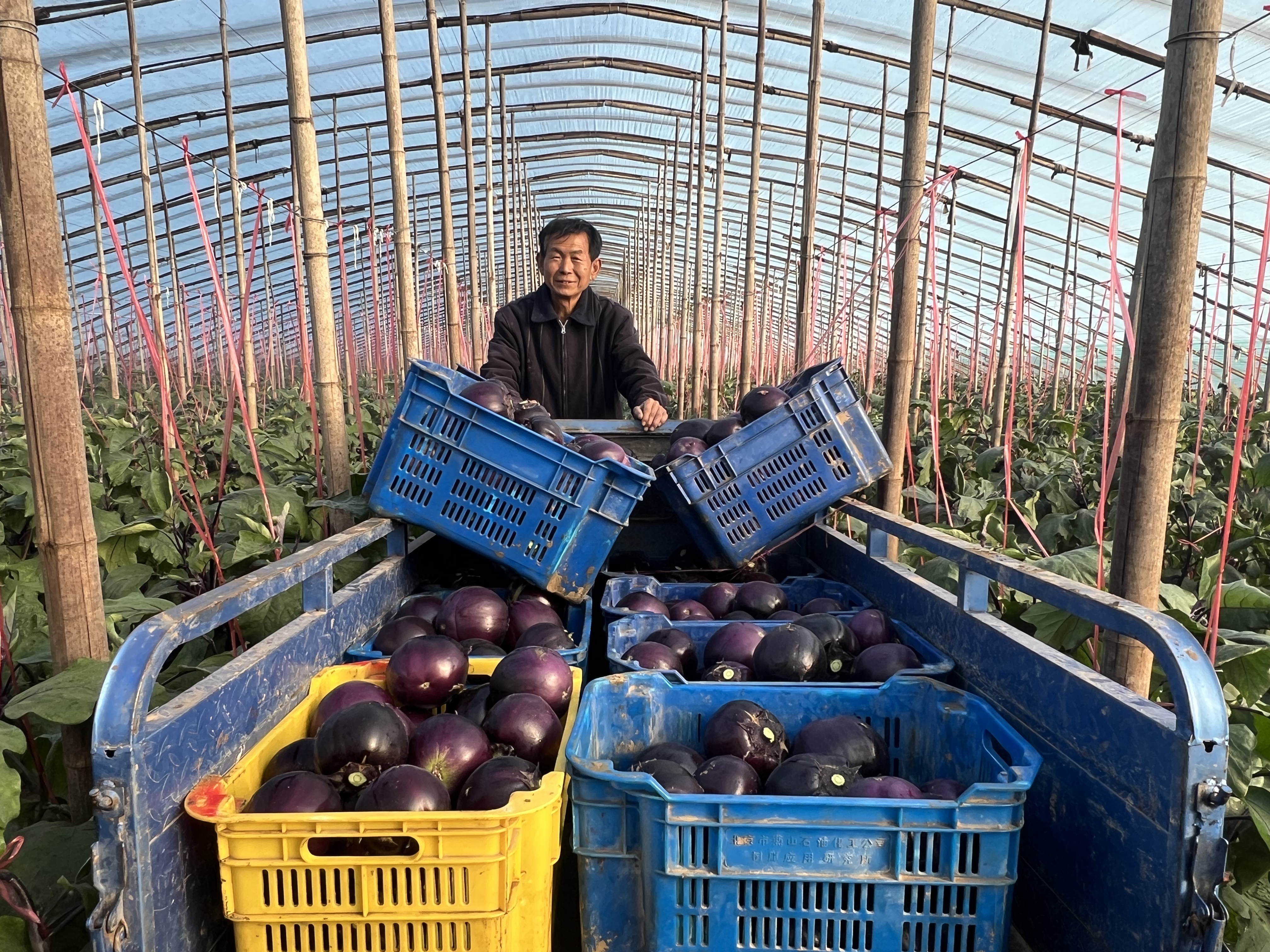 “今年又是大丰收!我这13亩大棚,平均每亩产量能达5000余斤,按照每斤1.6元的收购价,纯收入能有近10万元!”种植户李佳琦一边麻利地将刚采摘下来的茄子装入周转箱,一边笑得合不拢嘴。