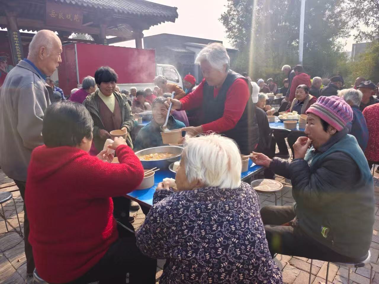 正午时分,香气四溢的大锅菜准时开席。热气腾腾的菜肴盛满碗碟,志愿者们穿梭其间,熟练地为老人们添饭递汤,一句句“您慢用”“不够再添”的贴心叮嘱,让暖意从舌尖直抵心间。这一碗碗免费的大锅菜看似朴素,却盛满了岳良村对老人的真挚关怀,更延续着村子世代相传的孝亲基因。