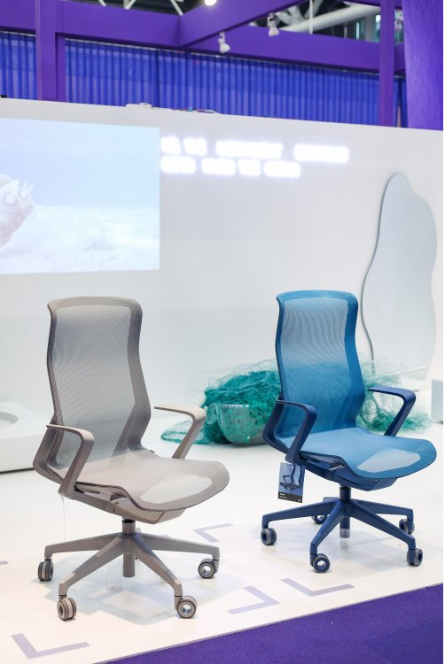 随着海洋废弃物回收技术的日渐成熟,这一设想逐渐具备落地条件。圣奥与理念相通的瑞士B4K工作室达成合作,共同研发海洋再生塑材料在办公家具领域的应用,最终推出哈孚椅。