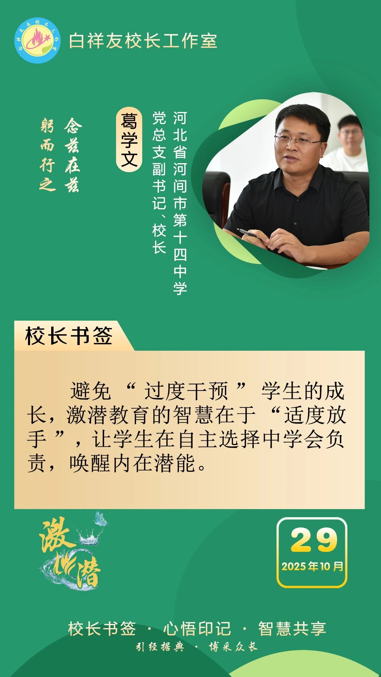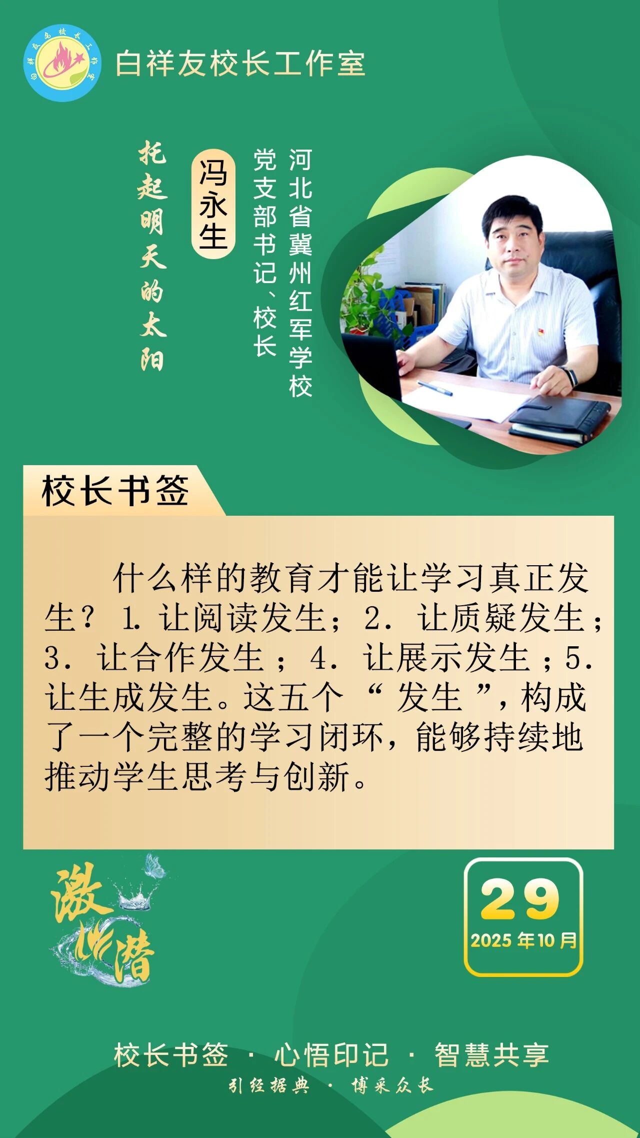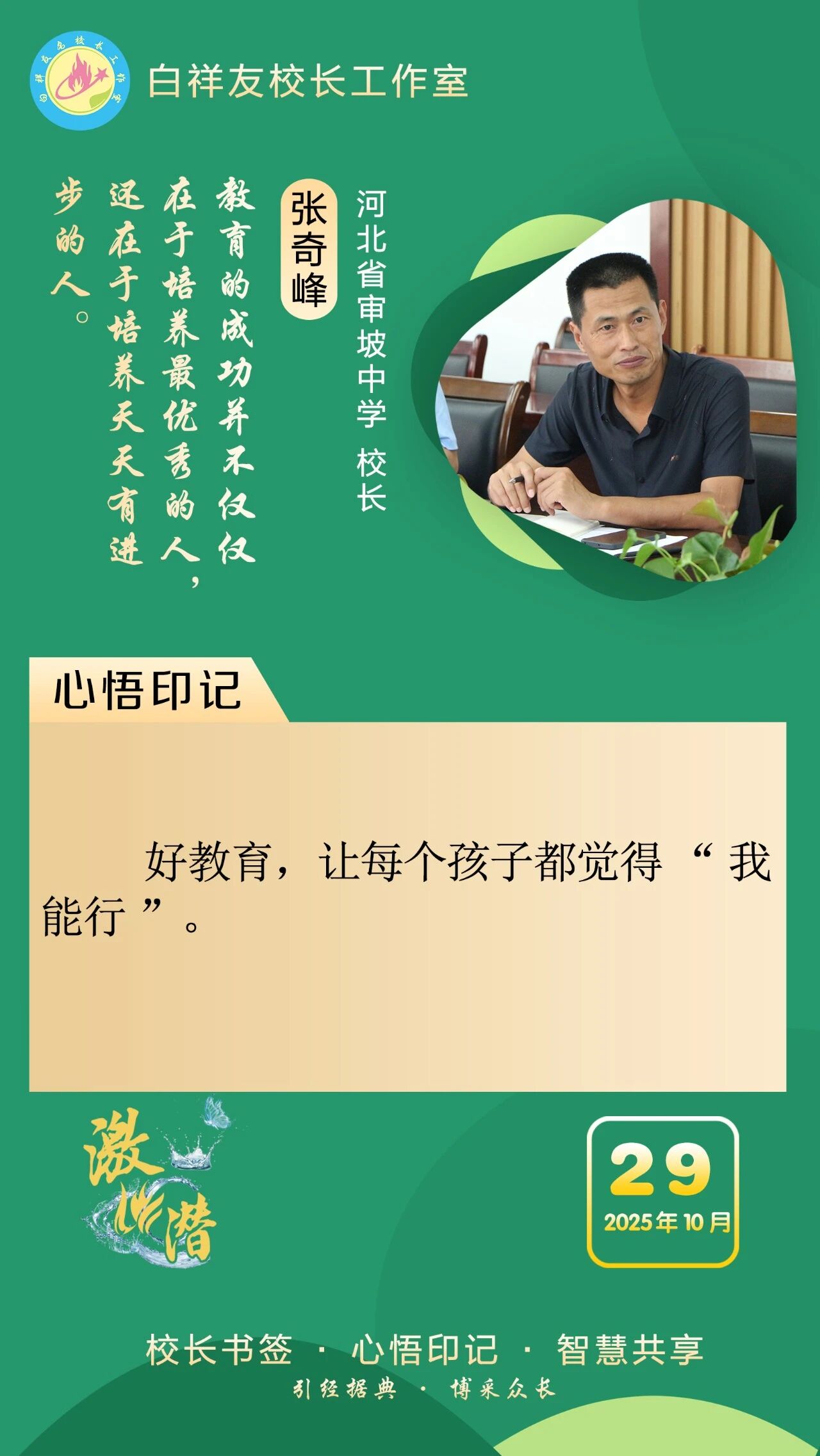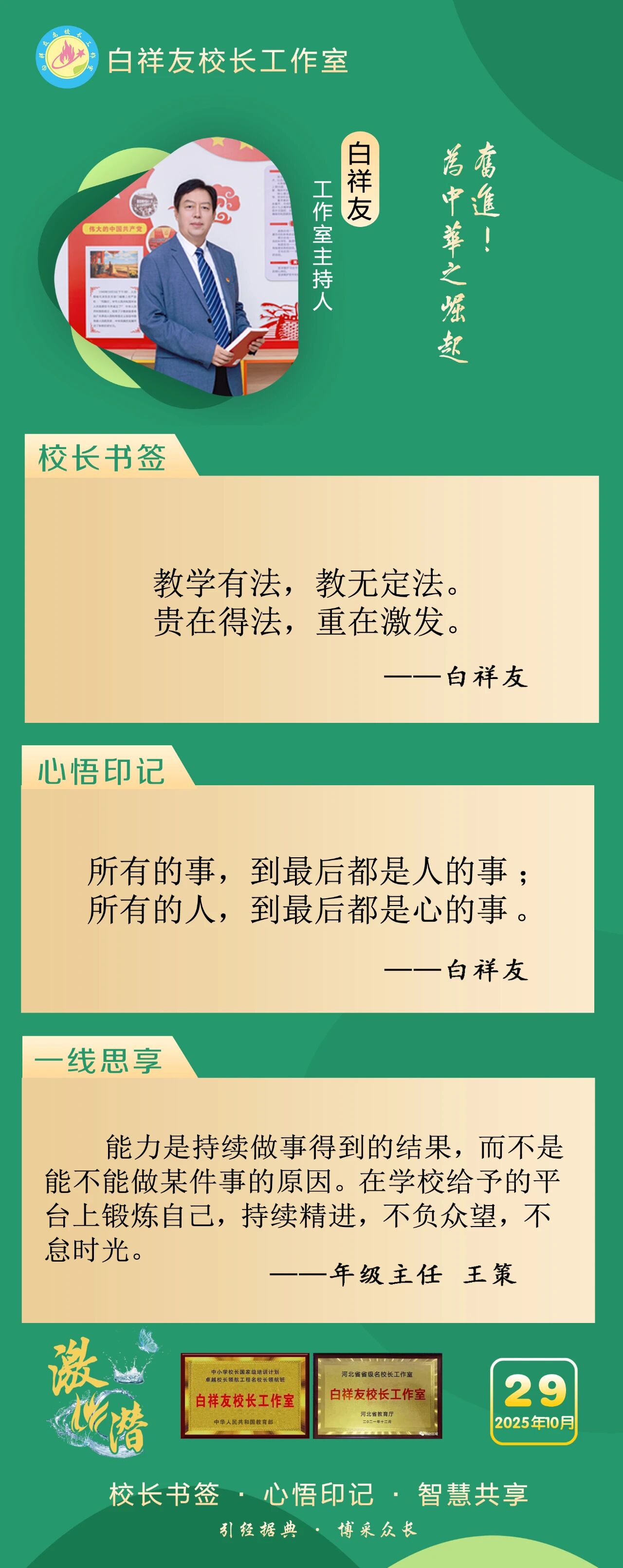 “白祥友校长工作室”成立于2019年4月,是教育部“国培计划”中小学名校长领航工程、河北省首批名校长工作室,目前省内外成员校59所。工作室坚持“资源共享、智慧共融、互助共赢”理念,已成为思想碰撞的交流场,资源共享的品牌站,成果展示的辐射源。 点赞 +1 微博 微信 我要评论 发布 相关推荐 祝贺!衡水十三中学子省赛获奖 教育大观 1天前 白祥友校长工作室成员新疆实验中学冯永庄校长一行来衡水十三中参观交流 教育大观 2天前 春日里,衡水十三中学子“抢”个痛快,“拼”出花样! 教育大观 5天前 衡水市委管理干部学习贯彻党的二十届四中全会精神研讨班开班 政情 03-19 全市一等奖!衡水十三中激潜教育再结硕果 教育大观 03-17 巾帼筑梦绽芳华 向光而行建新功 河北衡水中学举办第十八届“杰出女教师”表彰大会 资讯速递 03-09 衡水十三中学子这样追“锋”! 教育大观 03-06 热门 一天 三天 一周 1 【湖城慢直播】踏春寻梅正当时 定格衡水春日里的亮丽风景 2 【新闻发布】 创新招商促落地 深化服务提质效 衡水市持续打造投资兴业热土 3 微改革激发新活力 微创新助力大发展——衡水市扎实推进改革创新工作走深走实 4 我市全方位营造安心舒心消费环境 全年累计使用补贴资金8.3亿元 带动消费61.3亿元 5 故城:百人太极展风采 全民健身焕新颜 6 【文明旅游反面曝光】春游要文明 赏花莫“摧花” 7 故城县开展结核病防治宣传活动 8 衡水发布27个重点招商产业 聚焦县域特色精准发力 9 衡水滏阳路:美人梅盛开 繁花似锦 10 全国学雷锋活动示范点衡水公交18路队:服务不是喊口号,是把乘客没想到的提前想到 1 央媒省媒关注衡水春耕春管有序进行 2 315金融观察|交通银行:2026年以来累计被罚没超2200万元,近30天黑猫投诉平台新增超230条投诉 3 一碗免费热食 暖了衡水的烟火人间 4 深度报道|衡水商超这些年 5 赴春天之约 看杏韵花海 ——枣强县(肖张)第四届杏花文化宣传推介会掠影 6 衡水桃城区城东社区开展“世界水日”主题宣传活动 7 “入企探岗”+“直播带岗” 衡水市“春风行动”线上直播招聘活动创新出彩 8 衡水市各部门各单位有力有序开展树立和践行正确政绩观学习教育 9 河北各地各部门各单位扎实开展树立和践行正确政绩观学习教育 10 【乡村行 看振兴】“老咸菜”里的乡愁——走进武邑县冀京农粮食种植专业合作社 1 拾光纪·马年再会老朋友,上个马年他赠予习近平一匹汗血马 2 “白牌”电动自行车还能骑吗? 衡水晚报“帮办”核实:已全面禁行,违规上路会受罚 3 衡水文旅春日上新 十大场景开启沉浸式春游新体验 4 高职单招考试3月21日开考 衡水9300余名考生将参加考试 5 衡水发布七大主题线路开启春日盛宴 “湖城花事·衡水有约”诚邀京津冀游客共赴花期 6 315金融观察|大地财险罚单密集落地,暴露合规短板 7 探秘气象“大本营” 解锁防灾新密码 饶阳县气象局举办世界气象日科普开放活动 8 【新闻发布】锚定便民利企目标 衡水发布2026年自然资源营商环境新蓝图 9 【新闻发布】聚焦科技赋能 衡水绘就营商环境新图景 10 以鱼养水净河道 2万余尾草鱼苗放流滏阳河衡水市区段 广告 广告 广告 24小时 1 海报系列||早安衡水 2 时政现场说丨与雄安新区共成长 与中国式现代化同发展 3 拾光纪·“我对这里充满感情”,习近平心系燕赵大地 4 近闻·四赴雄安,对“未来之城”再部署 5 沧州银行DIY借记卡上线啦! 6 衡水发布27个重点招商产业 聚焦县域特色精准发力 7 春菜上新 衡水市区超市“鲜”意十足 8 阜城码头镇:运河岸边焕新颜 乡村颜值气质双提升 9 赴气象之约 探“风云变幻” 衡水滨湖志臻学子沉浸式解锁气象奥秘 10 河北衡水:全民健身 燃动湖城 系列之二——舞步翩跹 乐享生活