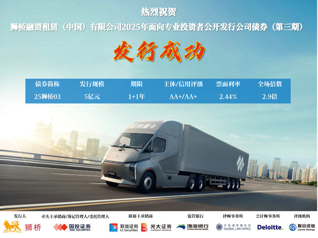 值得一提的是,狮桥集团于近期连续发行日元债和由渣打银行定制的ABS产品,进一步印证了国际金融机构对狮桥集团长期稳健经营、优质资产管理能力及持续成长潜力的高度认可。