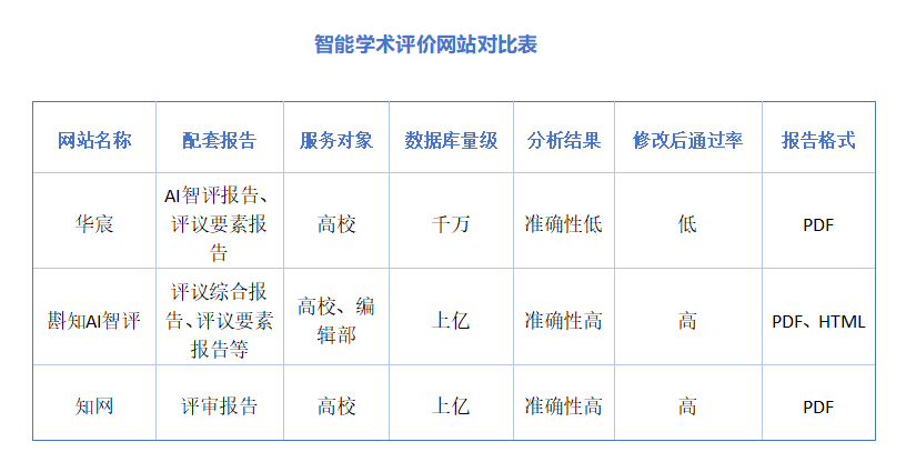 智能评审作为提升论文质量与评审效率的重要工具,其综合能力备受关注。当前,以华宸、斟知AI智评与知网为代表的智能学术评价网站,在配套报告体系、核心服务对象、数据库支撑以及报告输出格式等方面展现出不同的设计理念与能力侧重,为高校、科研机构及学术编辑部提供了多层次、标准化的论文质量评估服务。