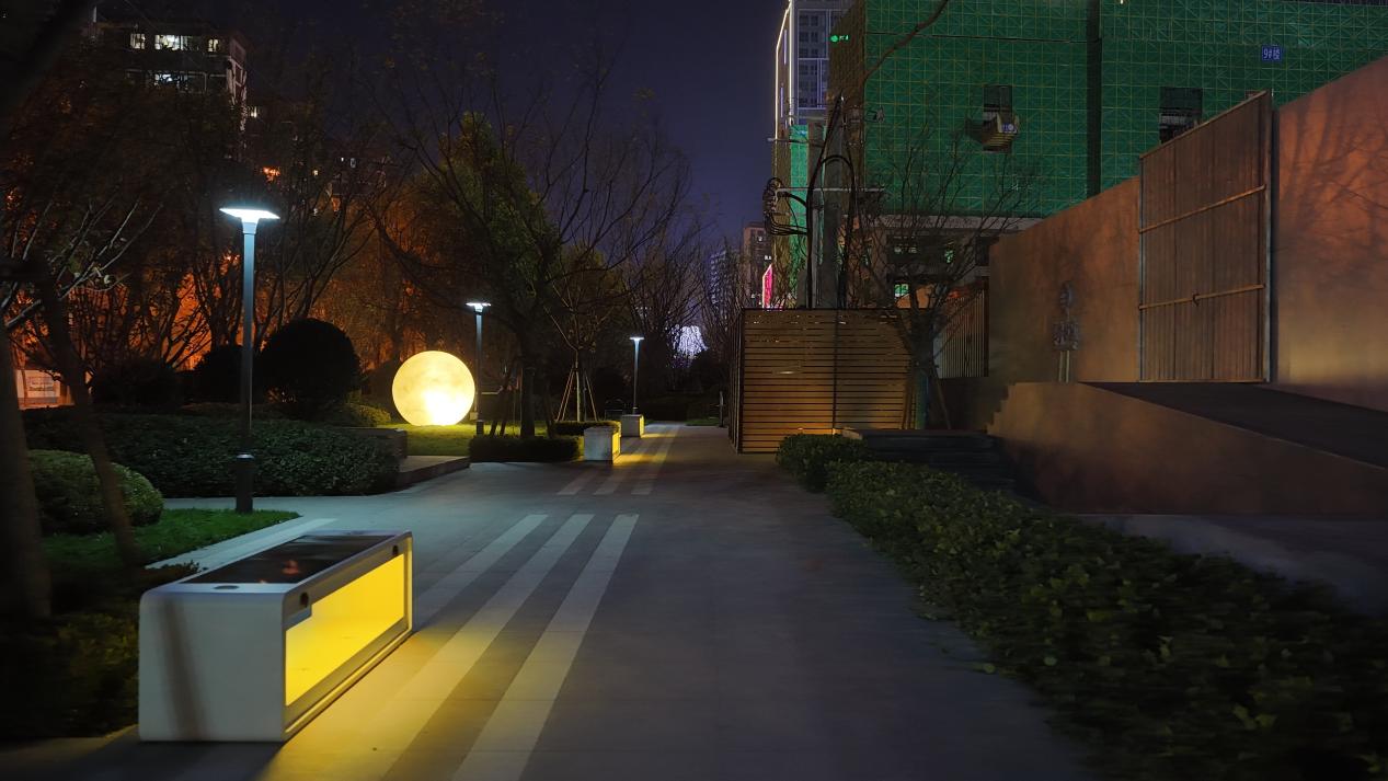 精致的品质藏于公园各个细节。天然石材的温润、耐候钢板的肌理、木质平台的亲和……材质在光影中对话,勾勒出时间痕迹,织就出空间温度。夜间行于园内,灯光不语,点亮归家愉悦。隐于草丛、藏于墙侧,只见光,不见灯。暖白光线温柔漫射,勾勒出夜的诗意轮廓,抚慰着归家心境。