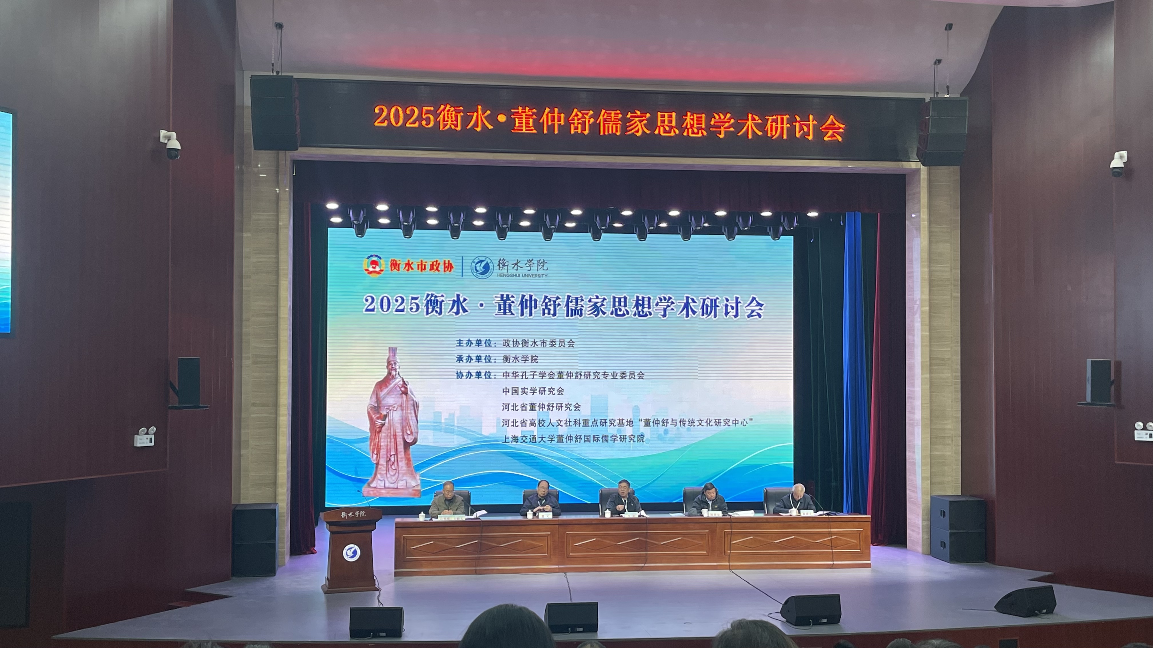 本届会议由政协衡水市委员会主办,衡水学院承办,中华孔子学会董仲舒研究专业委员会、中国实学研究会、河北省董仲舒研究会、河北省高校人文社科重点研究基地“董仲舒与传统文化研究中心”、上海交通大学董仲舒国际儒学研究院协办。