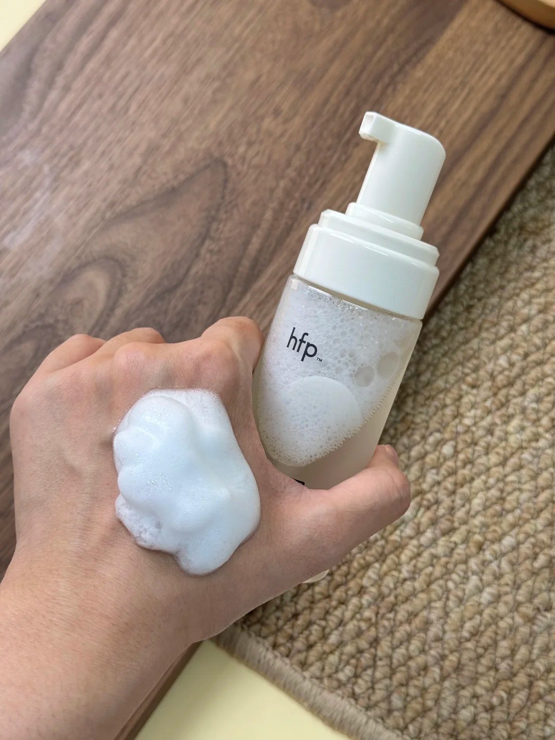 hfp洁面泡泡完全考虑到了这点,一按即出微米级泡沫,深入毛孔清洁,不仅省下打泡时间,也能避免起泡不均匀带来的局部刺激!