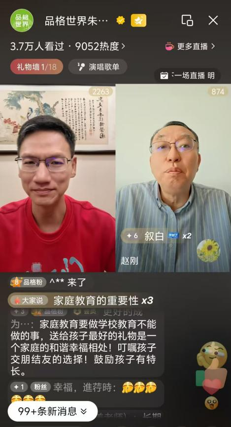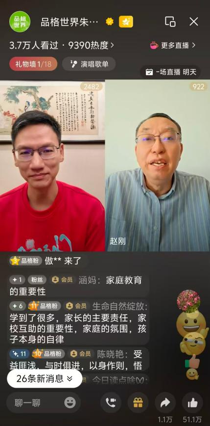 直播中,赵刚教授凭借深厚的学术造诣与丰富的一线实践经验,开篇便抛出核心观点:“家庭教育是父母以身作则,用你的信念去感召你的后代。”他结合多年观察到的教育案例指出,许多家庭在教育中存在“依赖学校”的误区,直言“当你把教育全寄托给学校时,就是对教育的误读”,强调家庭教育才是孩子人生成长的基石。同时,赵教授围绕“长期思维”展开论述,提出家长培养孩子不能急功近利,需坚持长期投入,既要关注知识传授,更要注重品格塑造与价值观传递,尤其要引导孩子养成“坚持”的品质——“一件事情,一个最重要的品质是做事情要坚持”,这种品质将成为孩子应对人生挑战的核心能力。