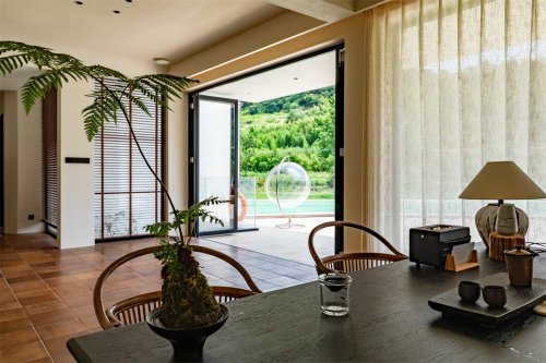 在这里,时光真正慢了下来,生活回归其本真的模样。一呼一吸间,皆是自然馈赠的诗意。临窗而坐,执一盏香茗,便能静观四季更迭:春雨轻叩窗棂,似在低语;夏蝉欢唱绿荫,充满生机;秋叶浸染金晖,沉淀静美;冬雪缀满枝桠,纯洁空灵。空间的生动,在于感知,窗外链接的是流动的时间,故而四时常新,生活永葆新鲜。