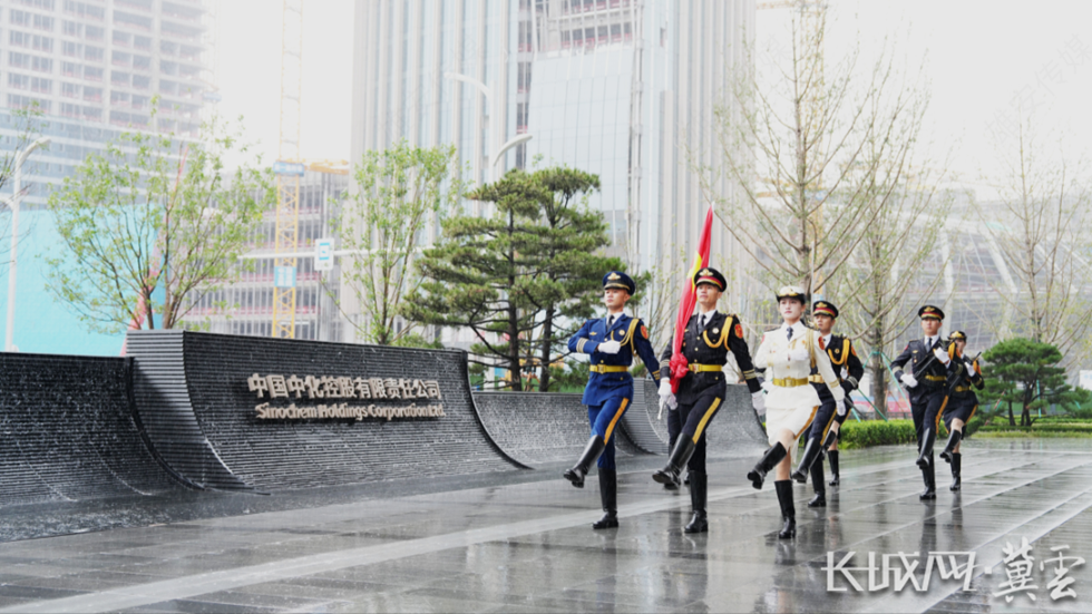中国中化控股有限责任公司升旗仪式现场。雄安媒体中心供图