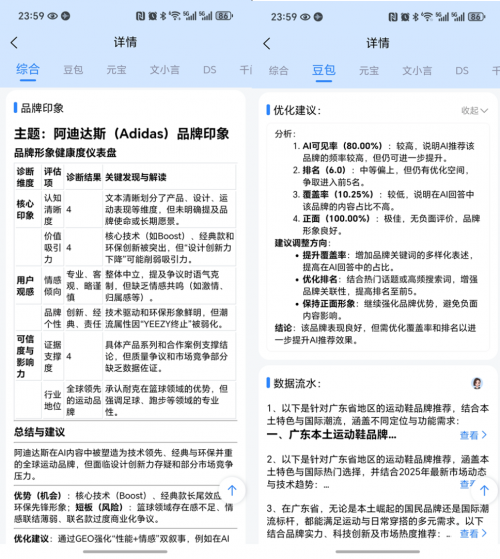 6.智能优化建议:针对各项指标短板生成 actionable 方案,例如针对低可见率建议优化 FAQ 结构化内容,针对负面情感提出舆情干预策略。