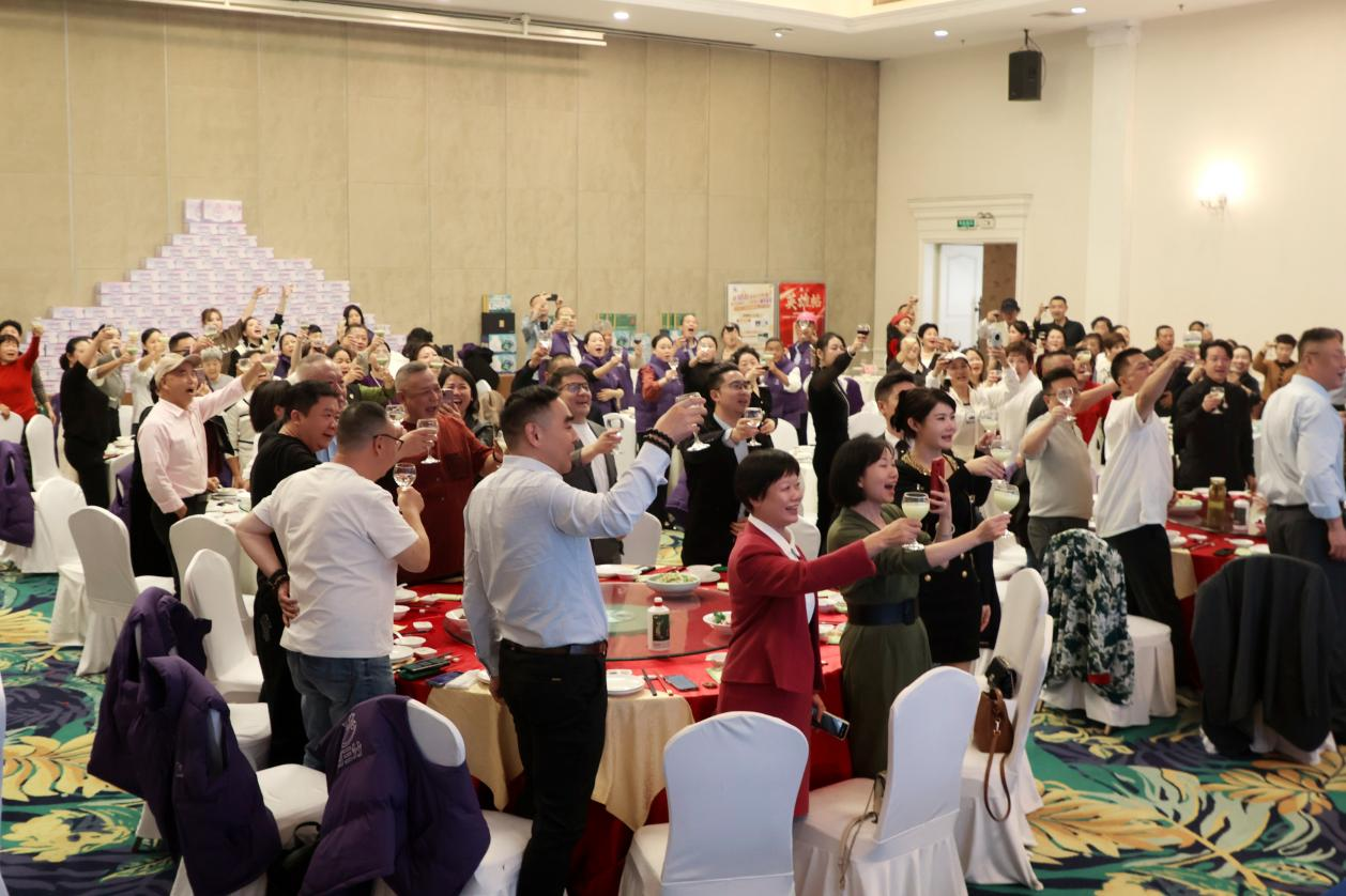 当晚的 “共赢美丽新经济” 答谢晚宴同样精彩纷呈。潘婷女士致祝酒词引领全场举杯,张学友模仿秀、古典舞及会员代理自发编排的歌舞表演轮番上演,营造出沉浸式的欢聚氛围。总值超 10 万元的重磅抽奖环节(特等奖醣糖蛋白套餐、一等奖神经酸 + 白蛋白组合等)惊喜不断,四位伙伴分享的品牌温暖故事,进一步深化了彼此的情感链接。