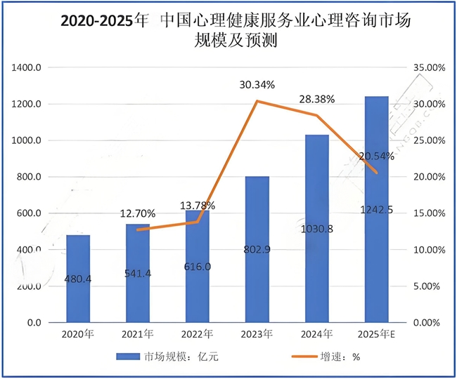 (2020-2025年中国心理健康服务业-心理咨询市场规模及预测图例)