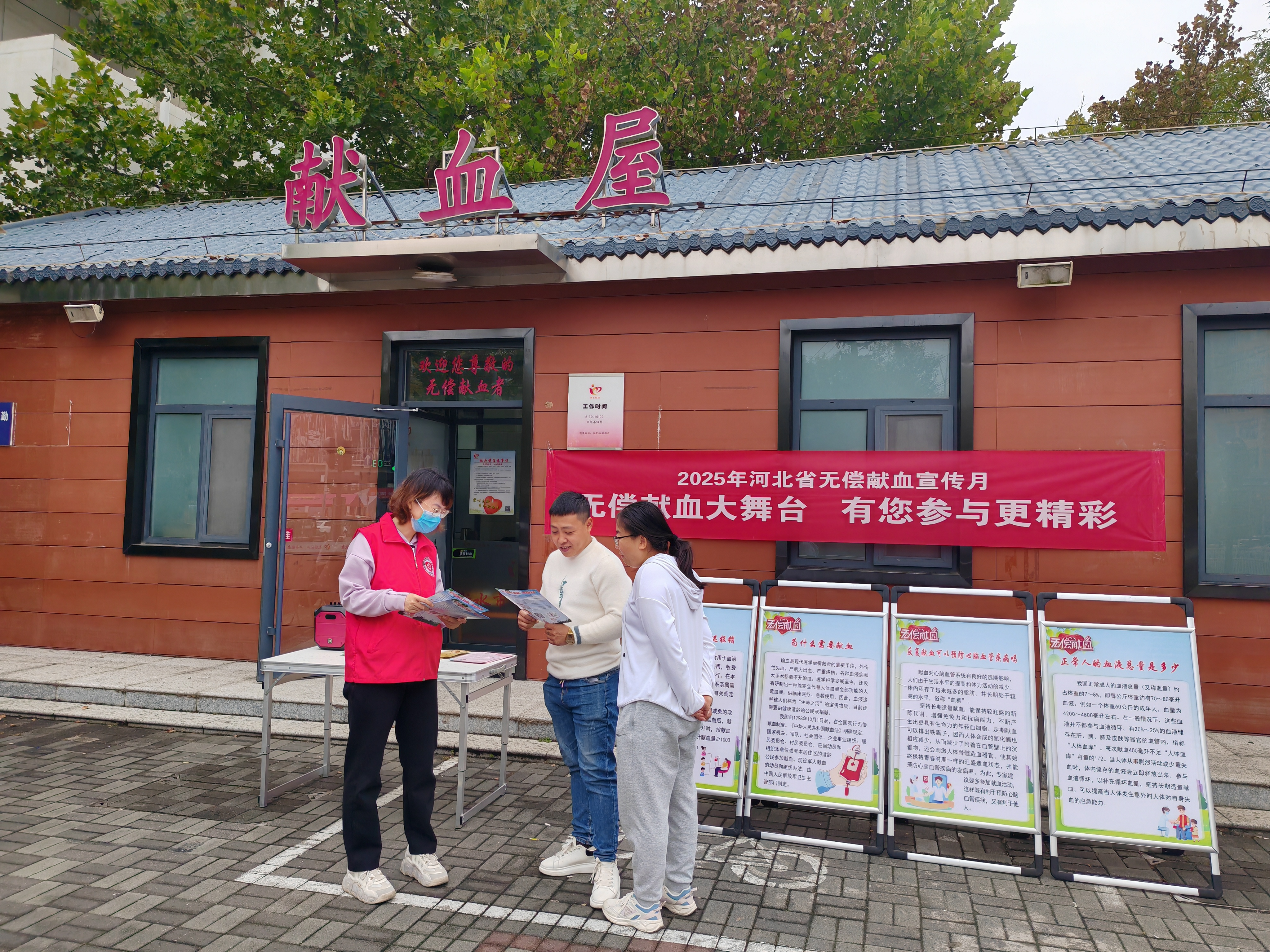 宣传月期间,衡水市中心血站多渠道织密宣传网络。“衡水献血”微信公众号持续推送无偿献血科普100问、献血常识等权威内容;在室内外电子显示屏滚动播放公益宣传片,四辆采血车悬挂宣传条幅及献血条例宣传画。市区百货大楼、休闲广场献血屋设立固定宣传点,工作人员与志愿者通过横幅展板、宣传单页等形式,向市民普及献血条件、注意事项,同步提供血压测量、血型检测等便民服务。