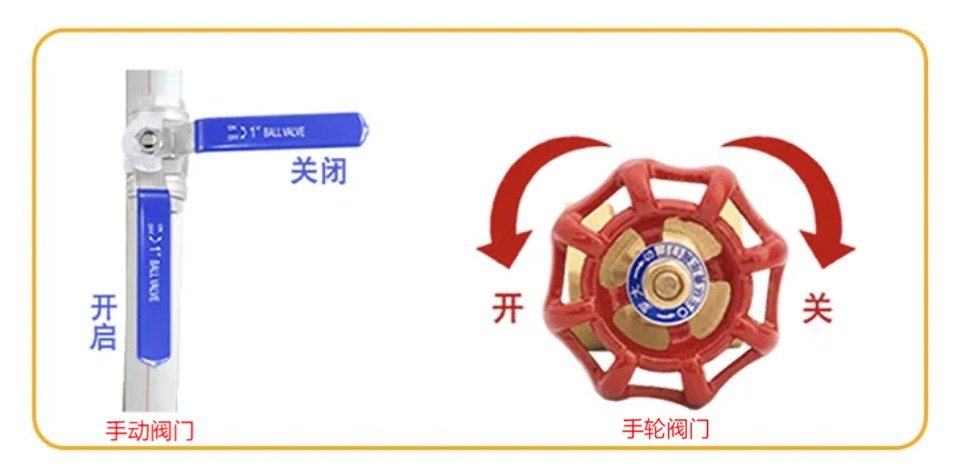 在入户管道上,通常还会安装手轮阀门或手动阀门。手轮阀门按顺时针方向旋转为关闭,逆时针方向旋转为开启;手动阀门的控制柄为长柄状,上下调动90°,即可进行开关。